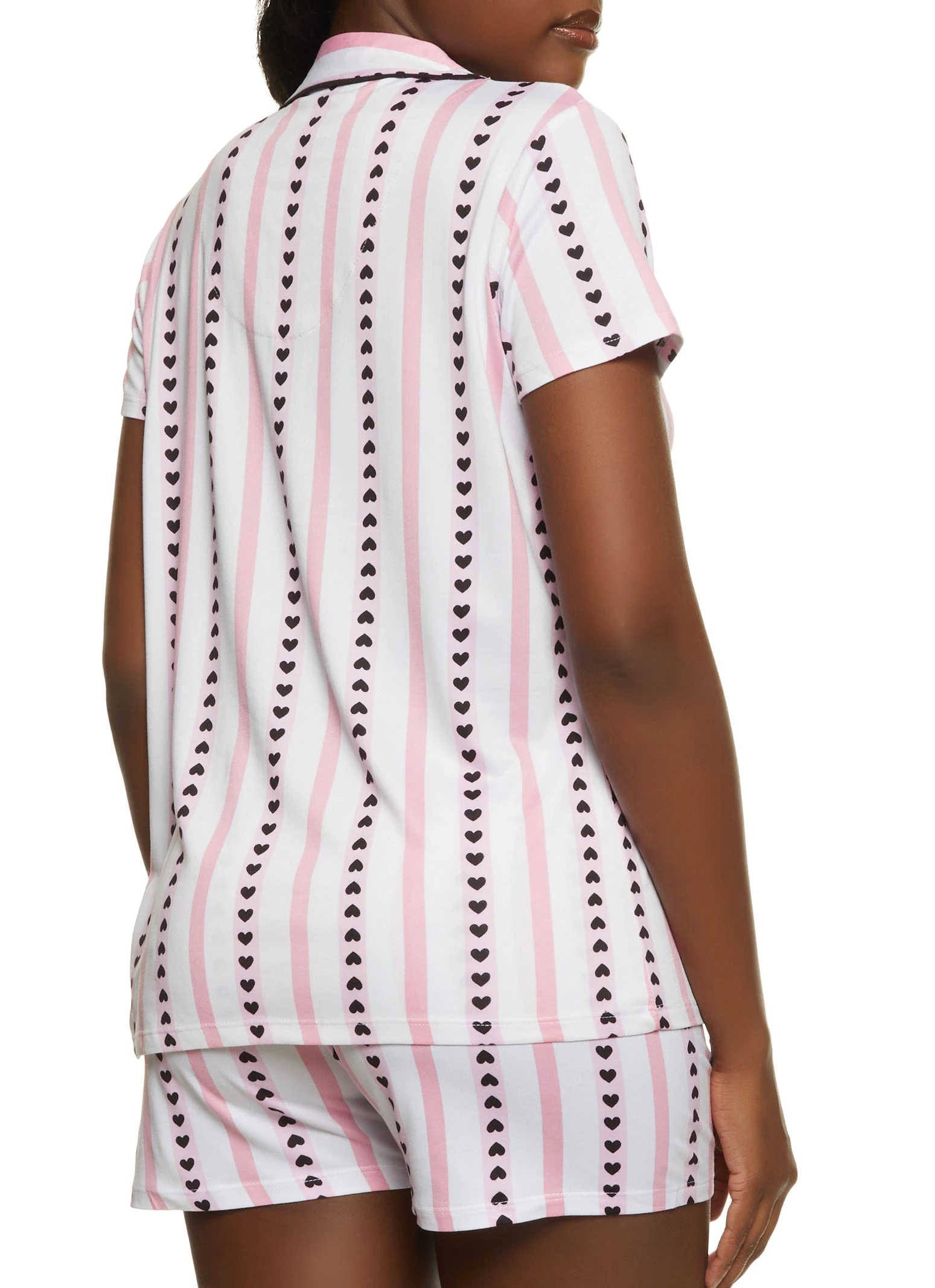 Heart Striped Pajama Shirt and Shorts – IVORY