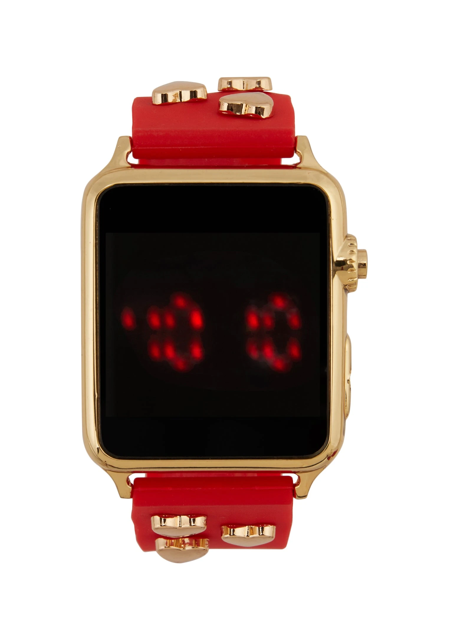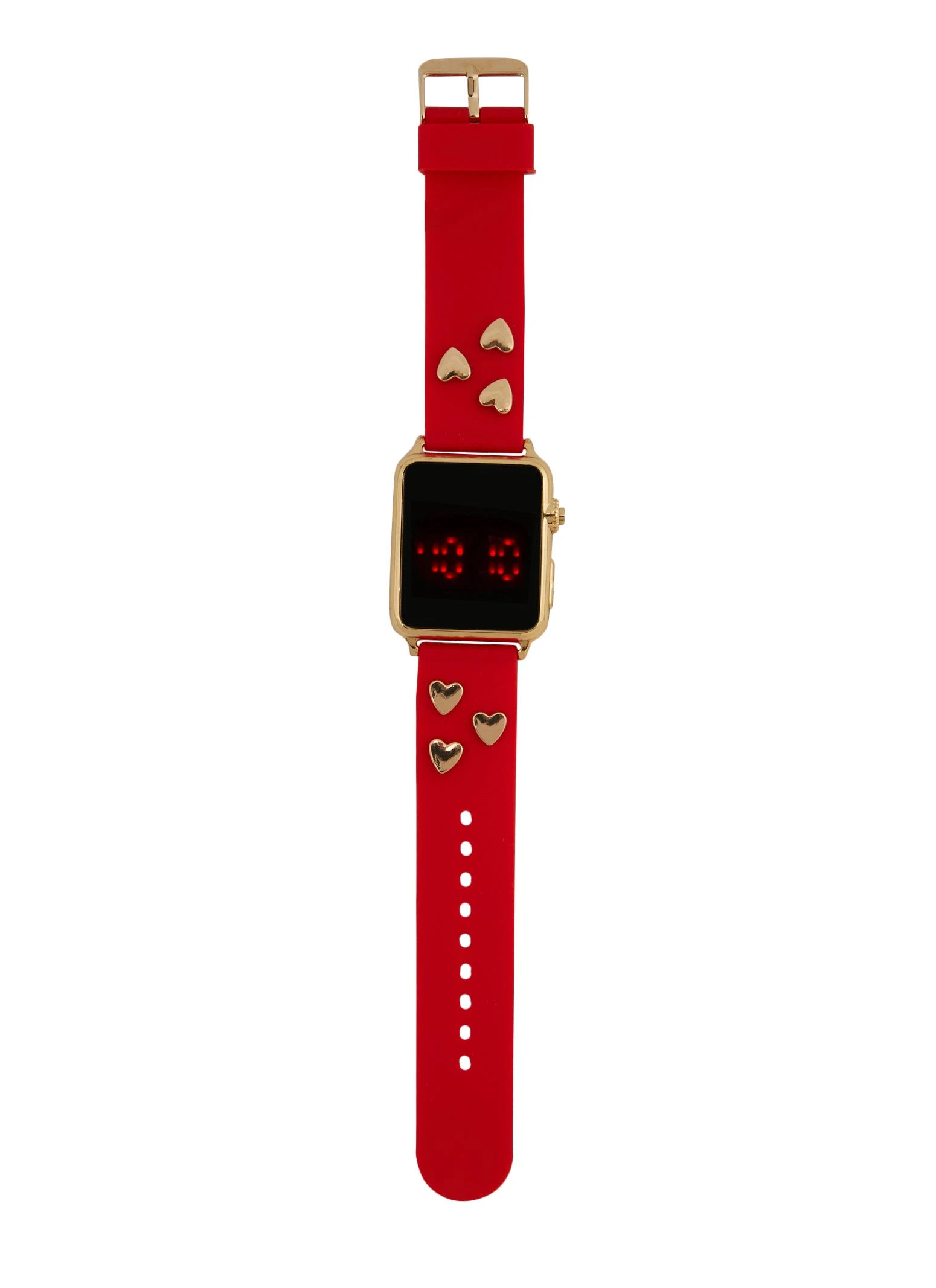 Heart Studded Silicone Strap LED Watch – RED