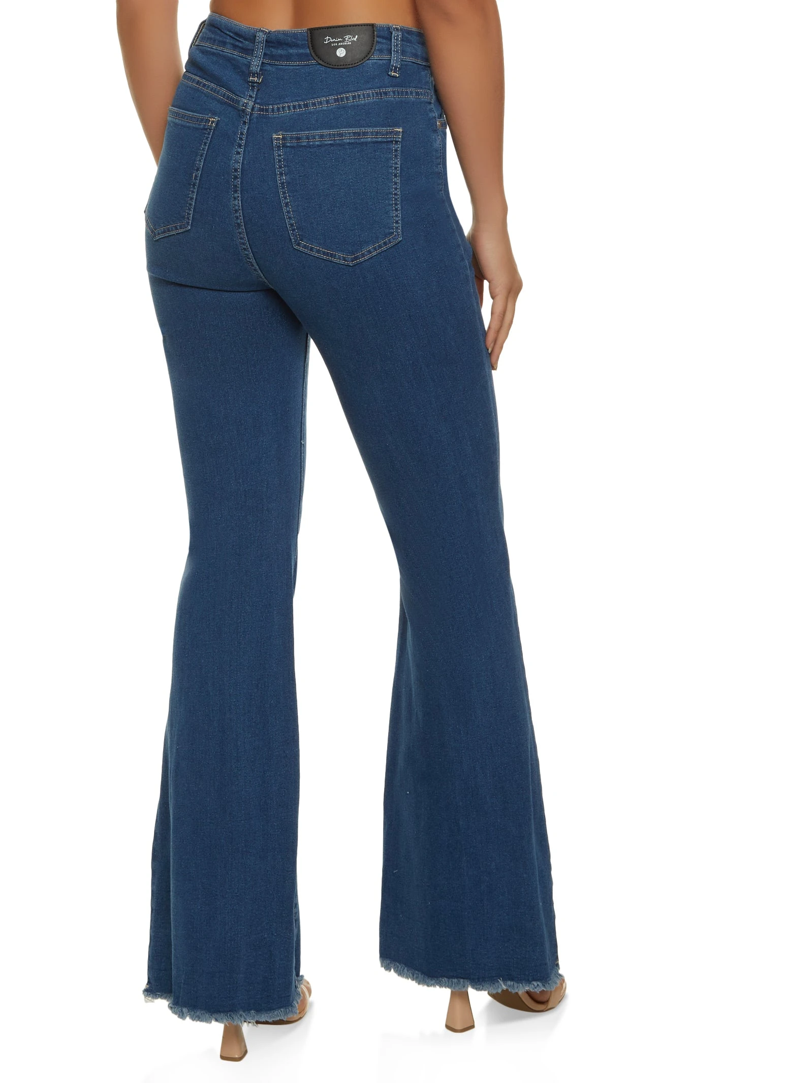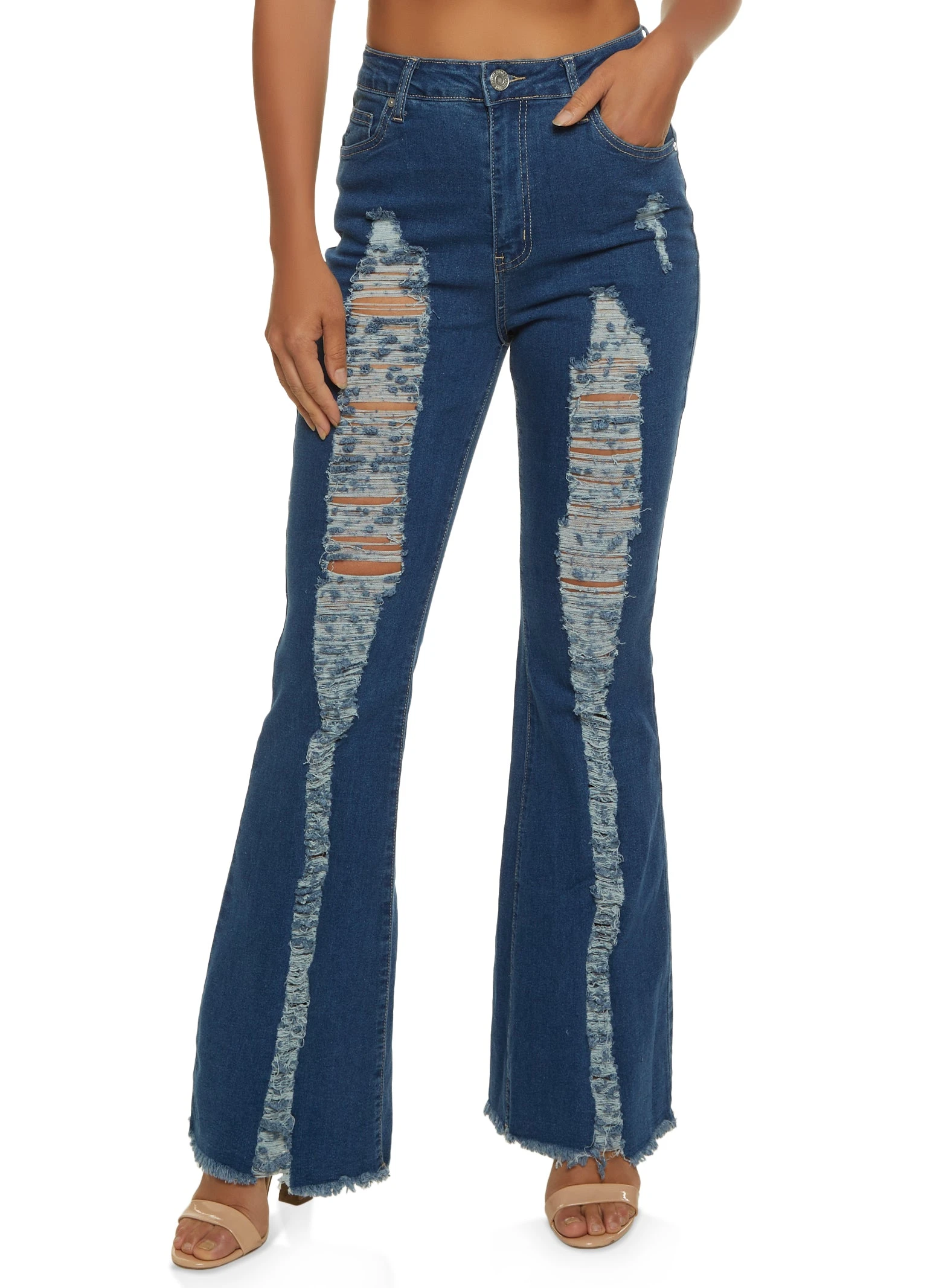 High Waist Distressed Flared Jeans – MEDIUM WASH