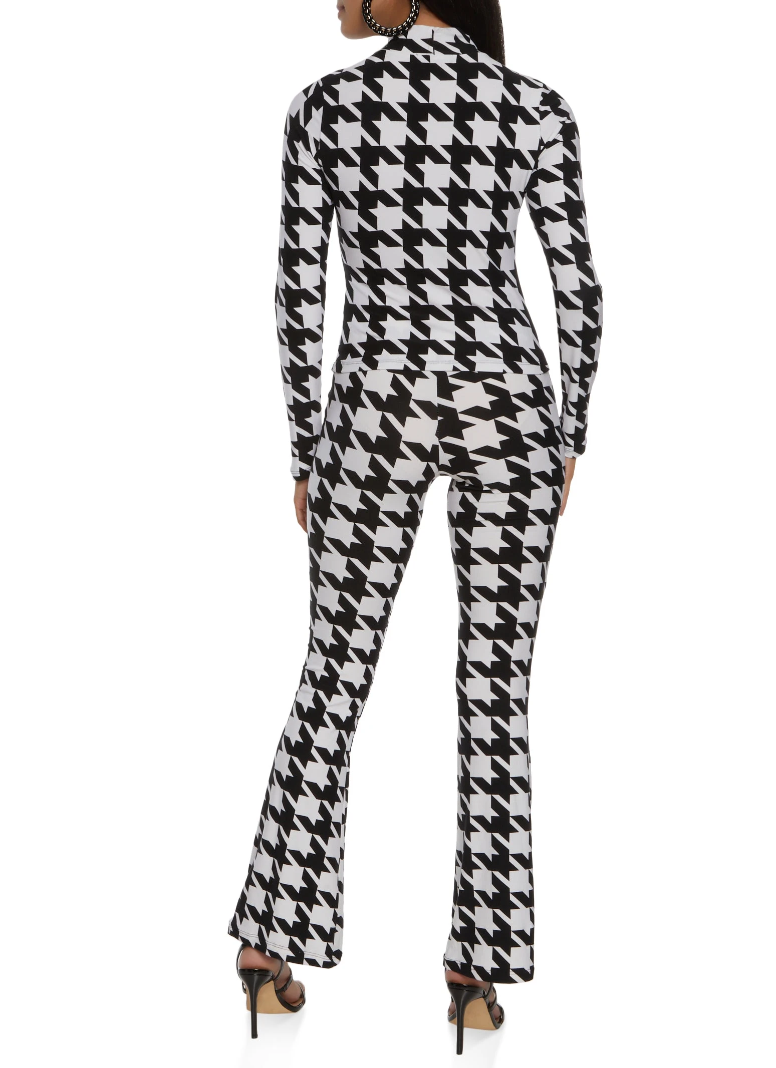 Houndstooth Mock Neck Top and Pants Set – BLACK/WHITE