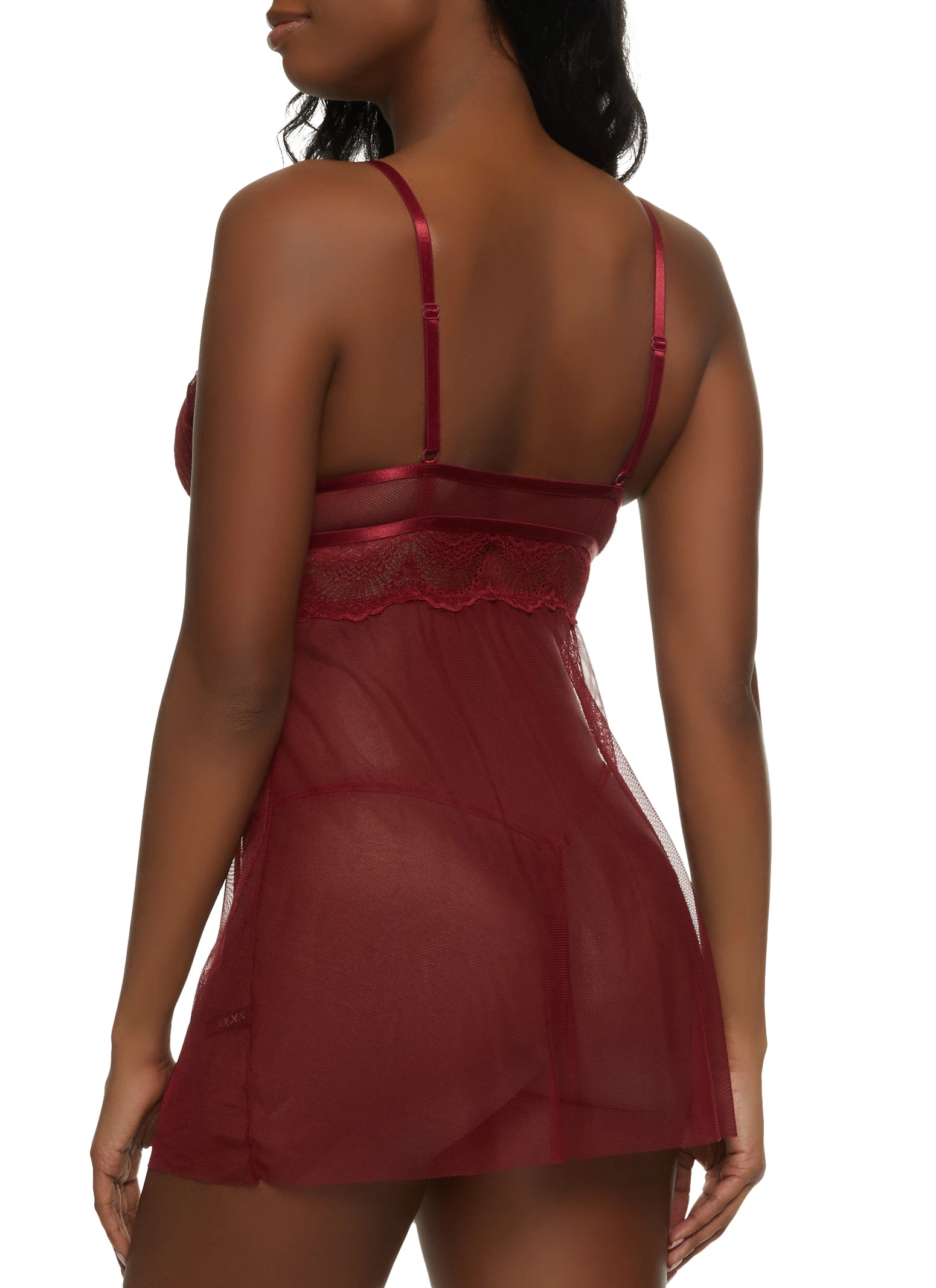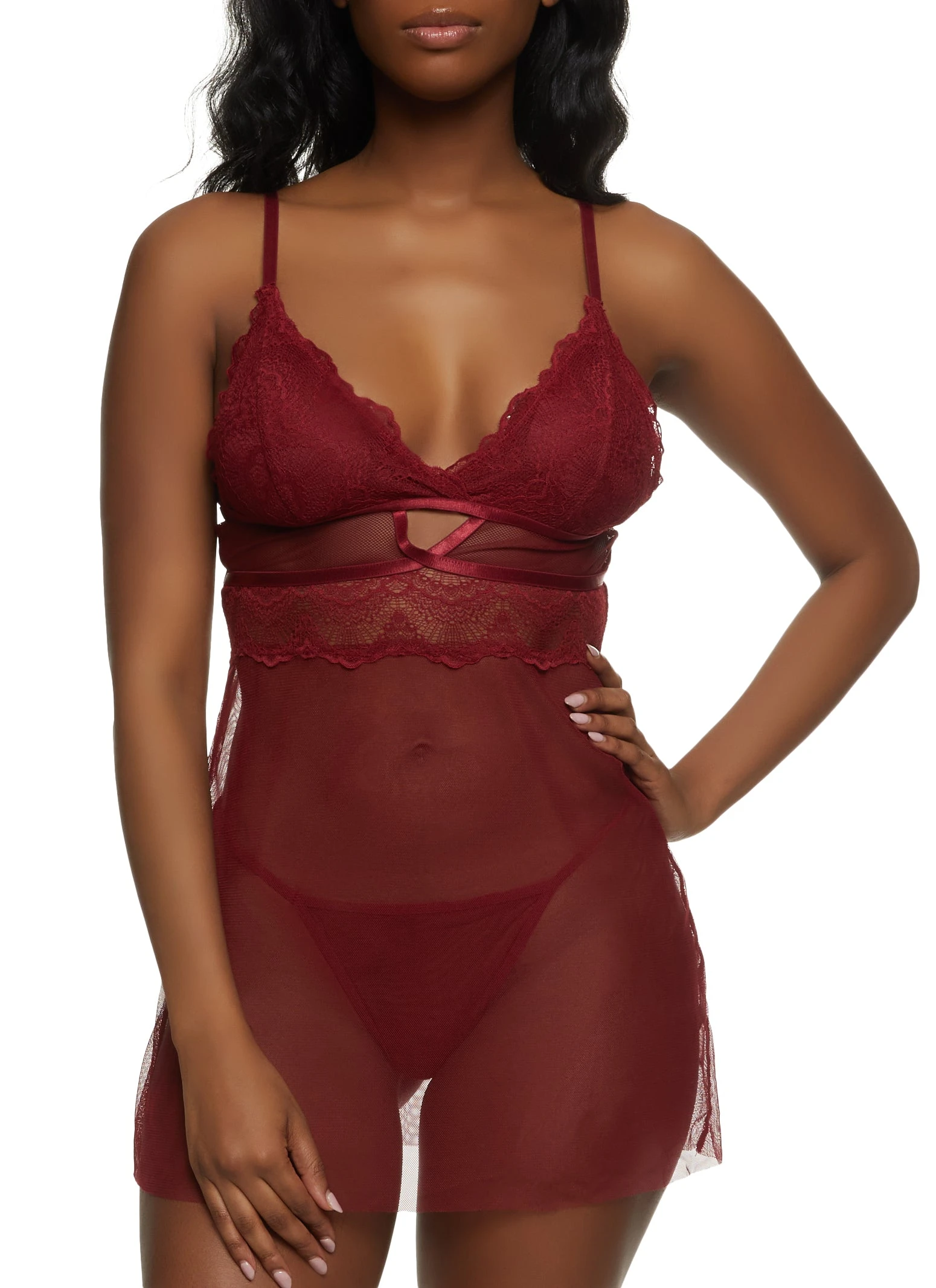 Lace Keyhole Babydoll and G String – BURGUNDY
