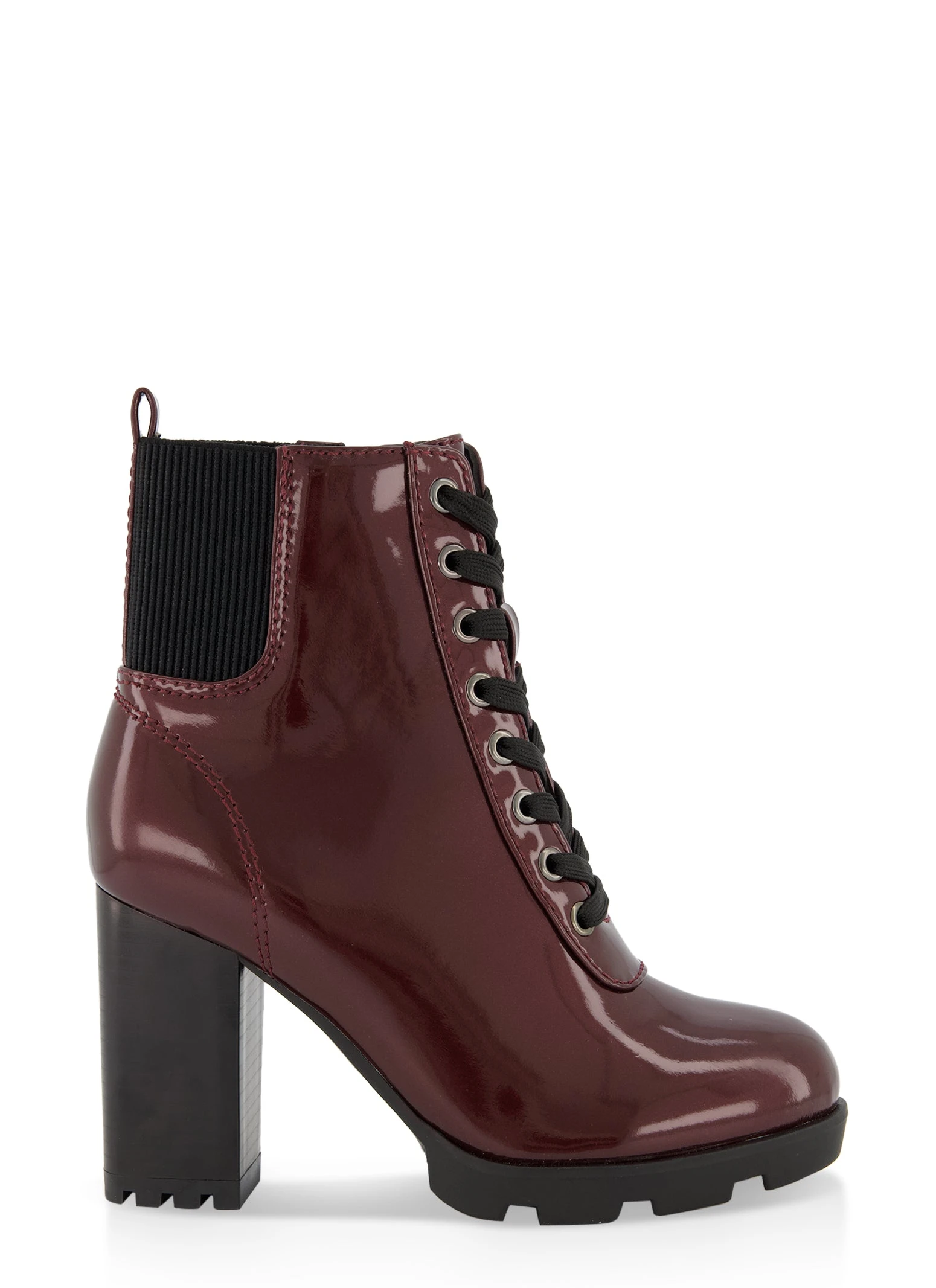 Lace Up Block Heel Booties – BURGUNDY