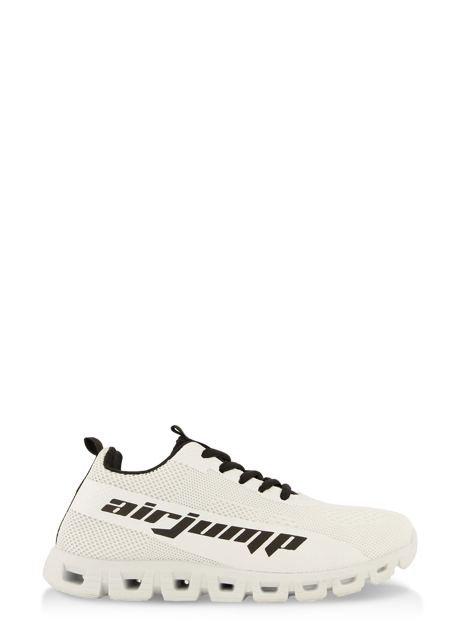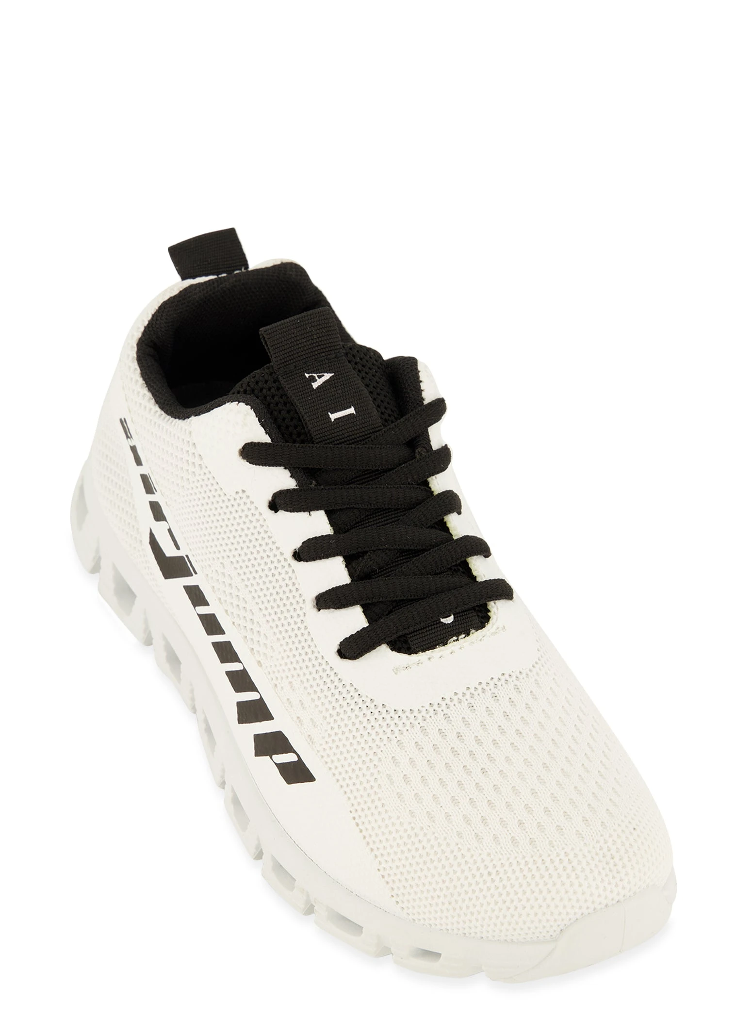 Lace Up Textured Knit Athletic Sneakers – WHITE