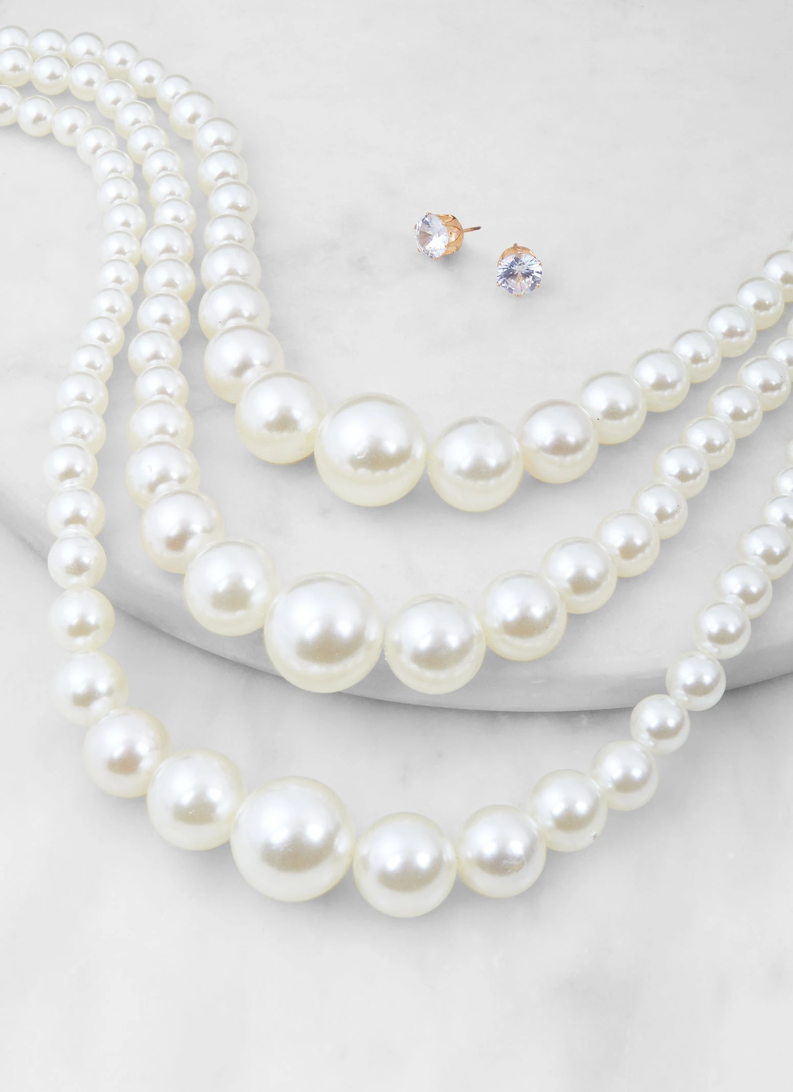 Layered Faux Pearl Necklace and Stud Earrings – IVORY