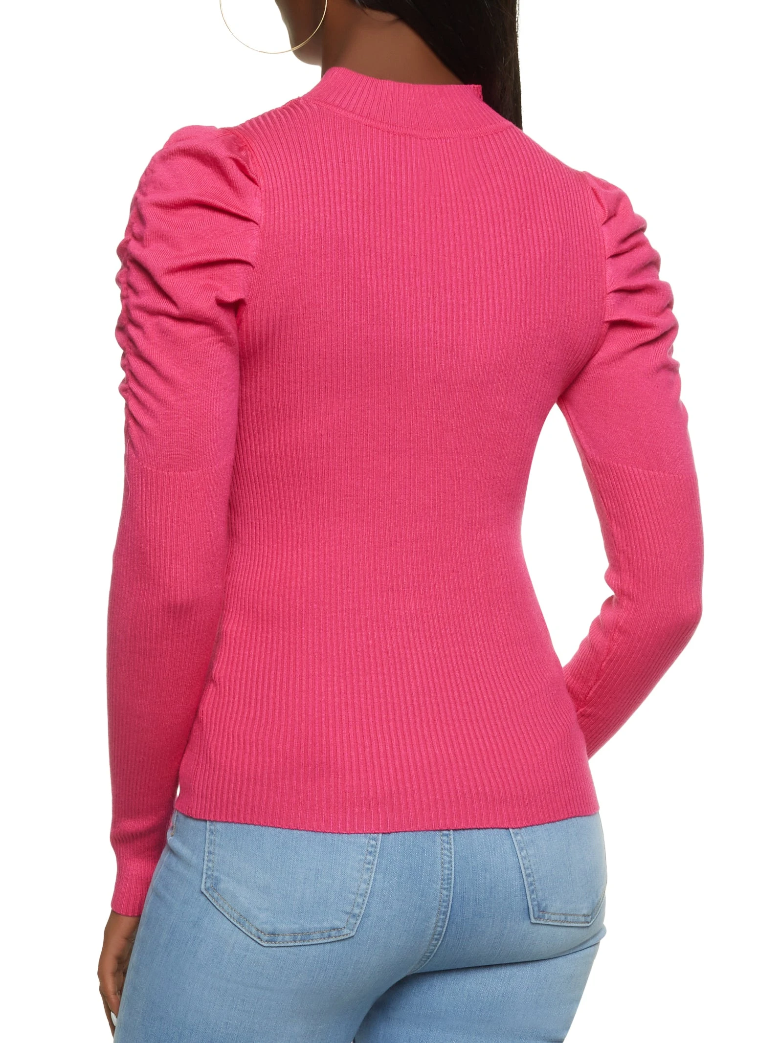 Long Puff Sleeve Mock Neck Sweater – FUCHSIA