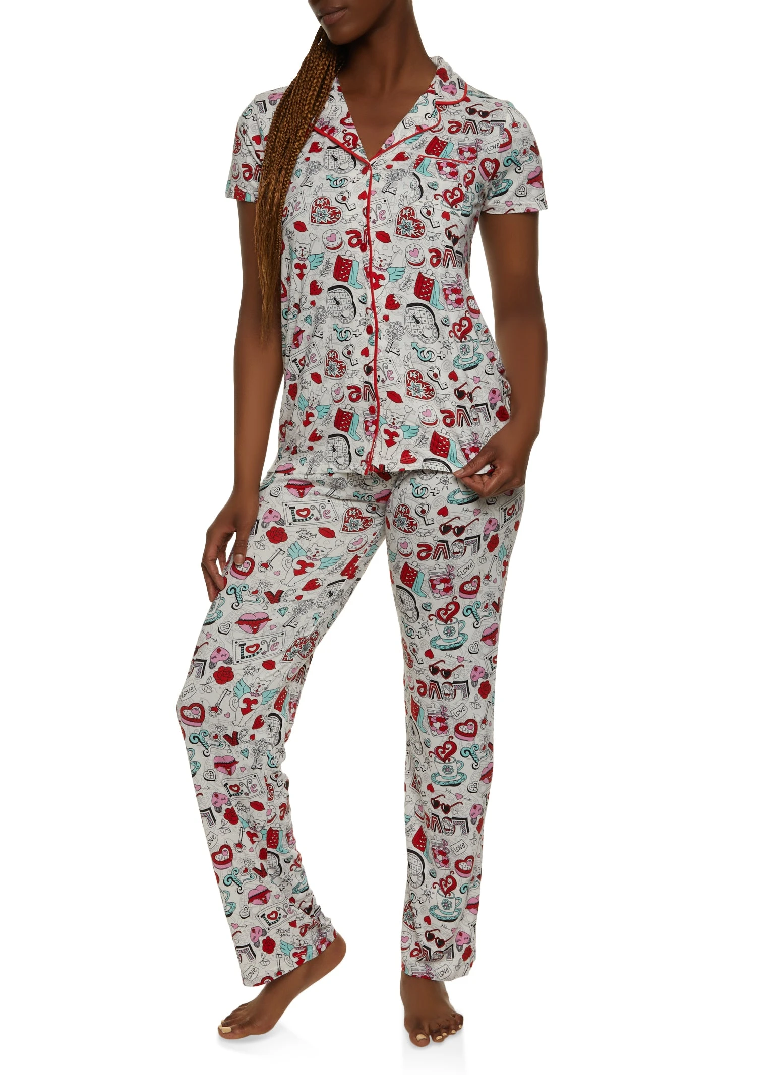 Love Doodle Print Pajama Shirt and Pants – MULTI COLOR