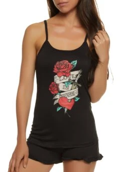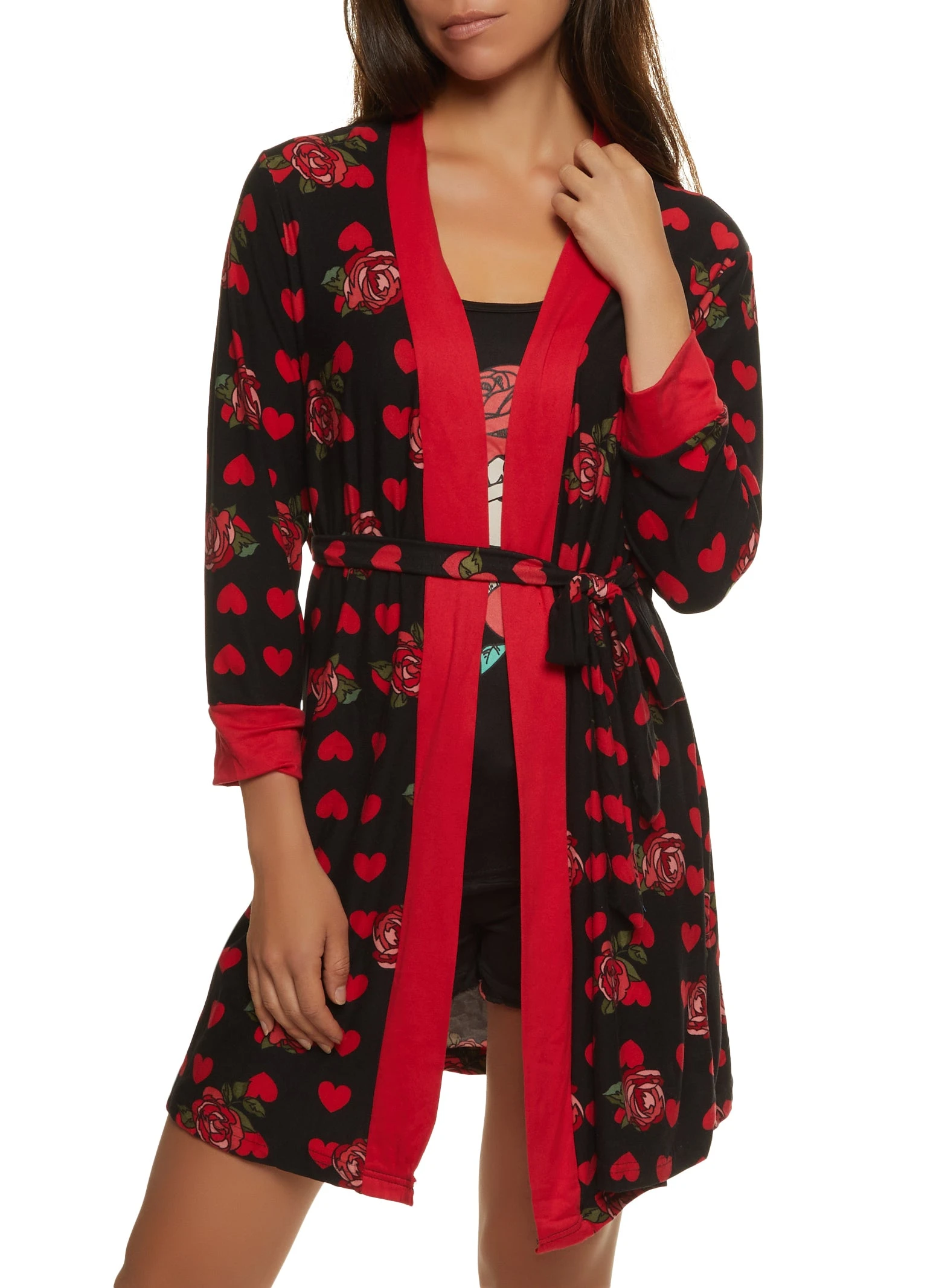 Love Is Everywhere Pajama Cami and Shorts with Robe – BLACK