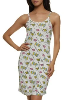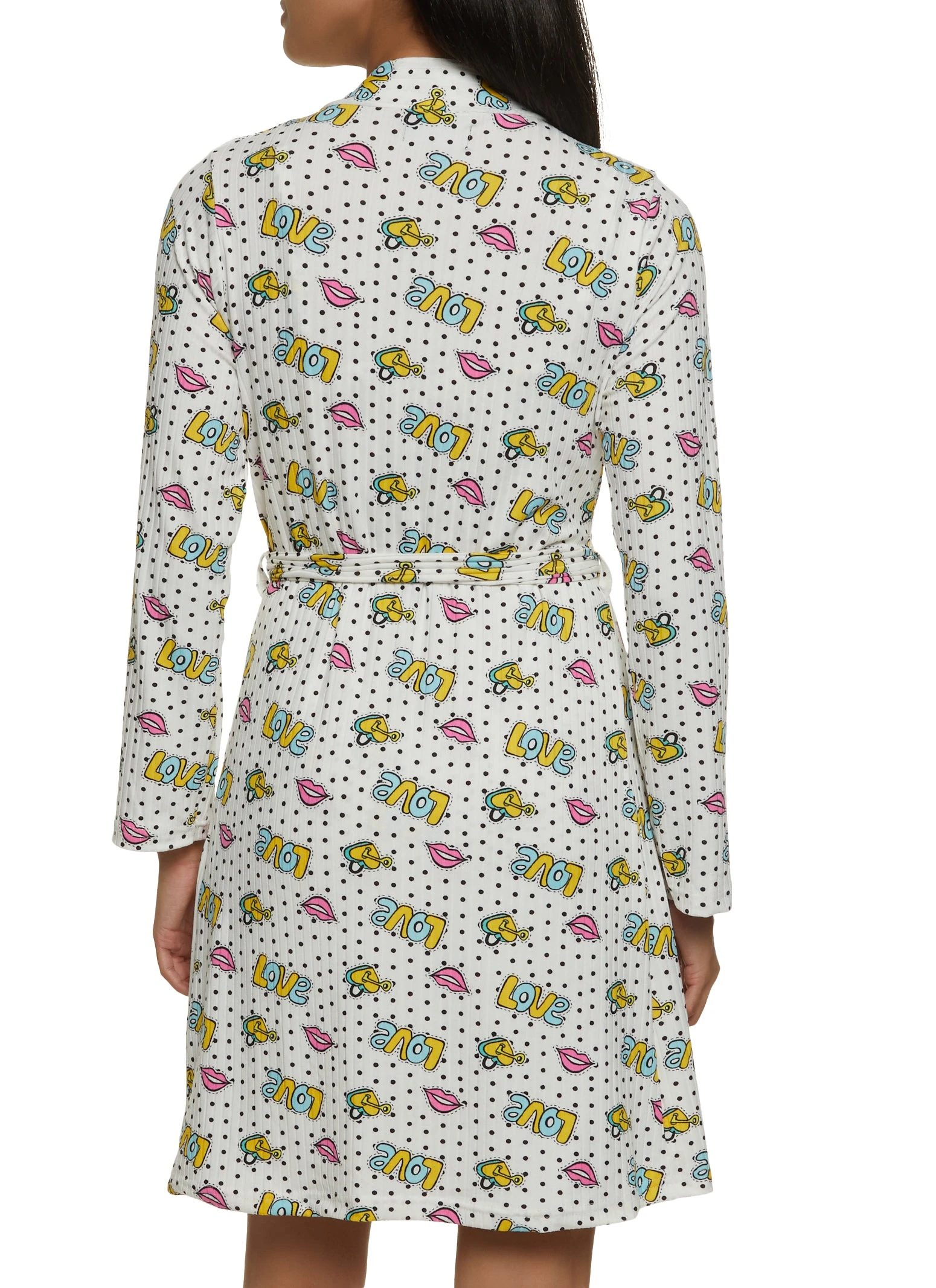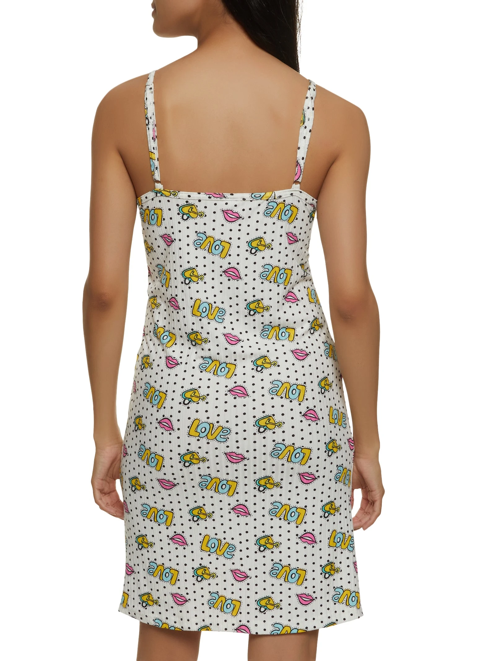 Love Polka Dot Print Nightgown with Robe – WHITE