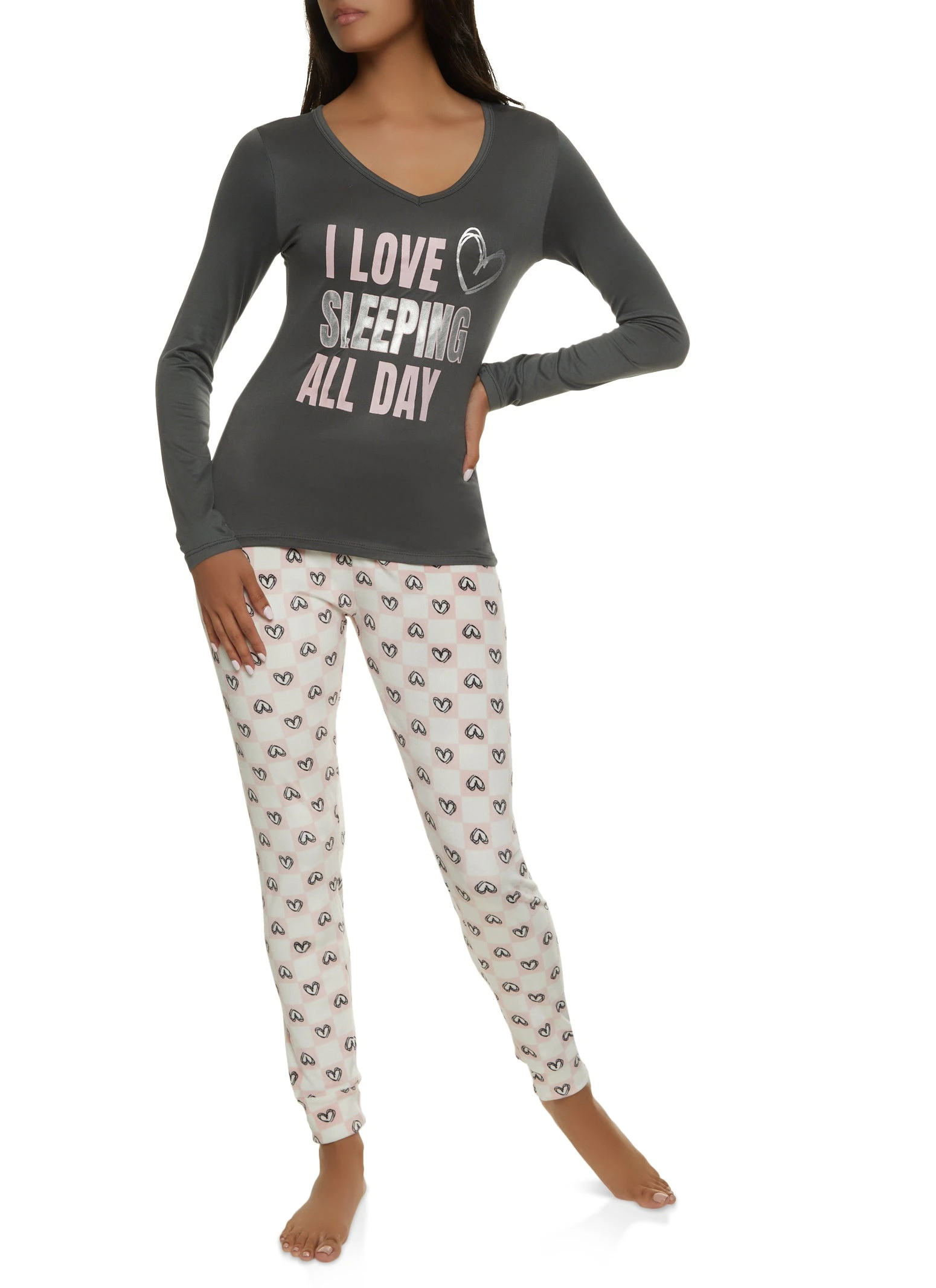 Love Sleeping Pajama Top and Velour Pants – GRAY