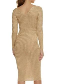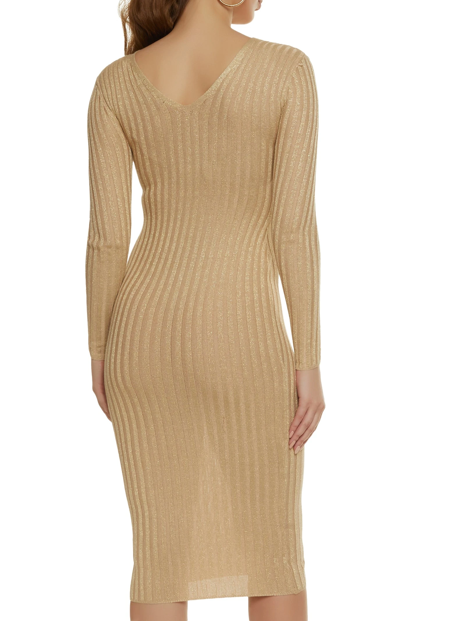 Lurex Ribbed Knit Long Sleeve Midi Dress – IVORY