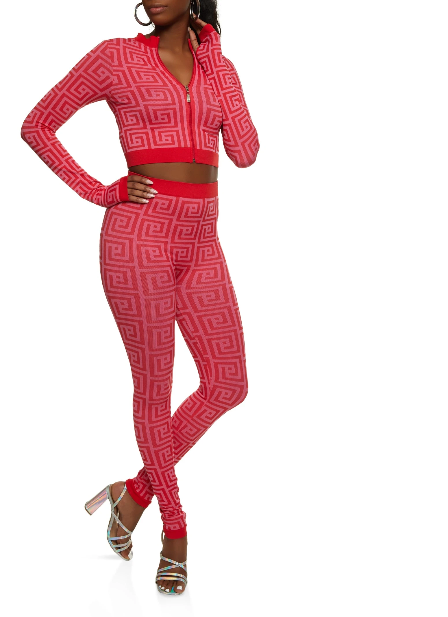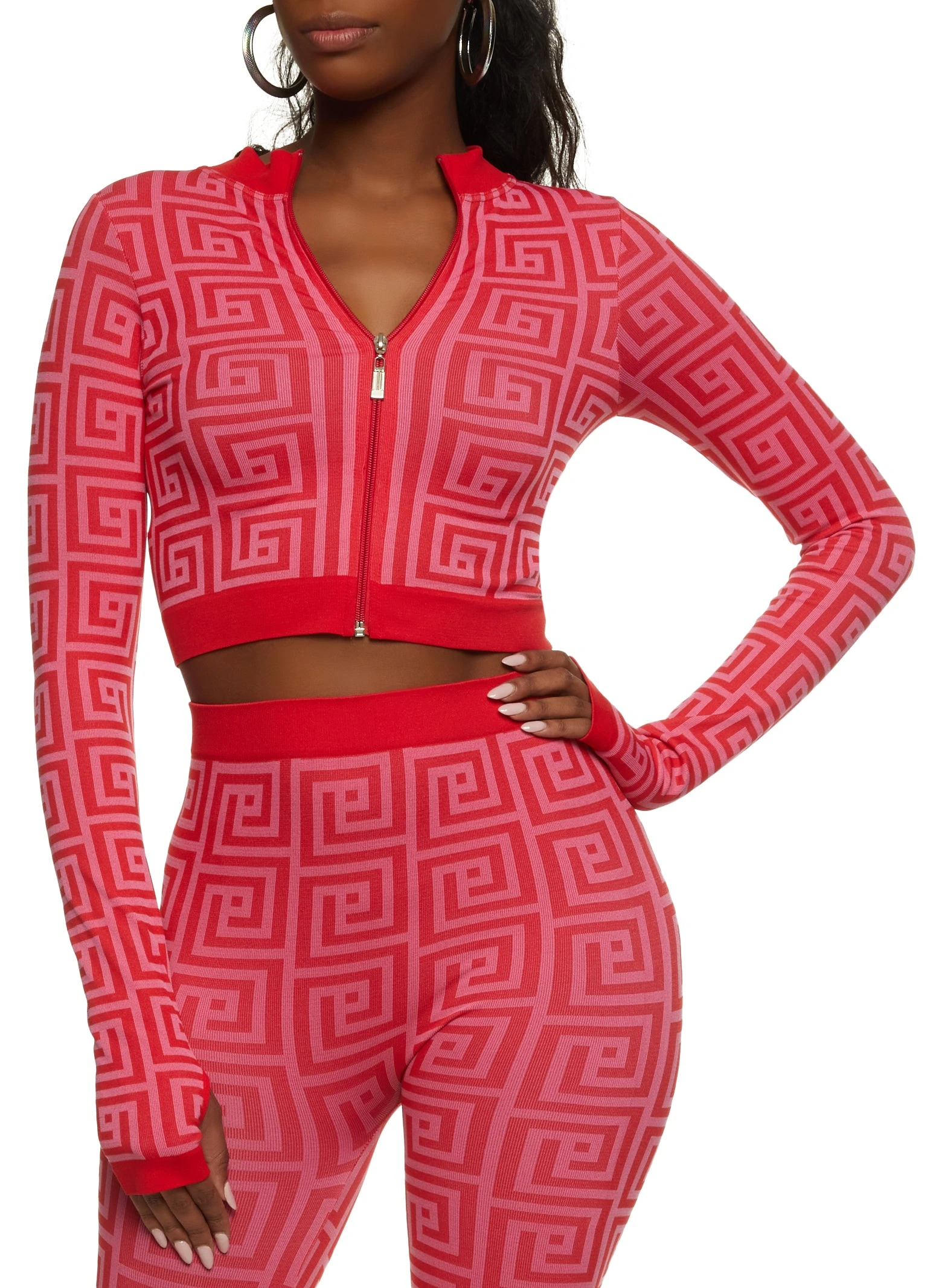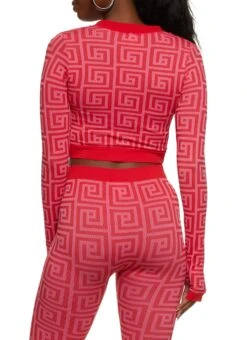 Maze Print Seamless Cropped Track Jacket – RED