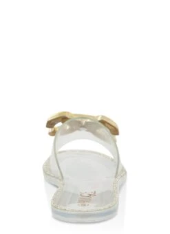 Metallic Buckle Flat Jelly Sandals – CLEAR