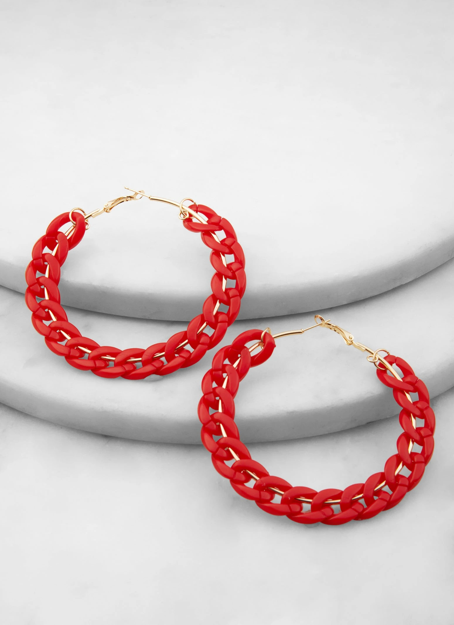 Metallic Curb Chain Hoop Earrings – RED