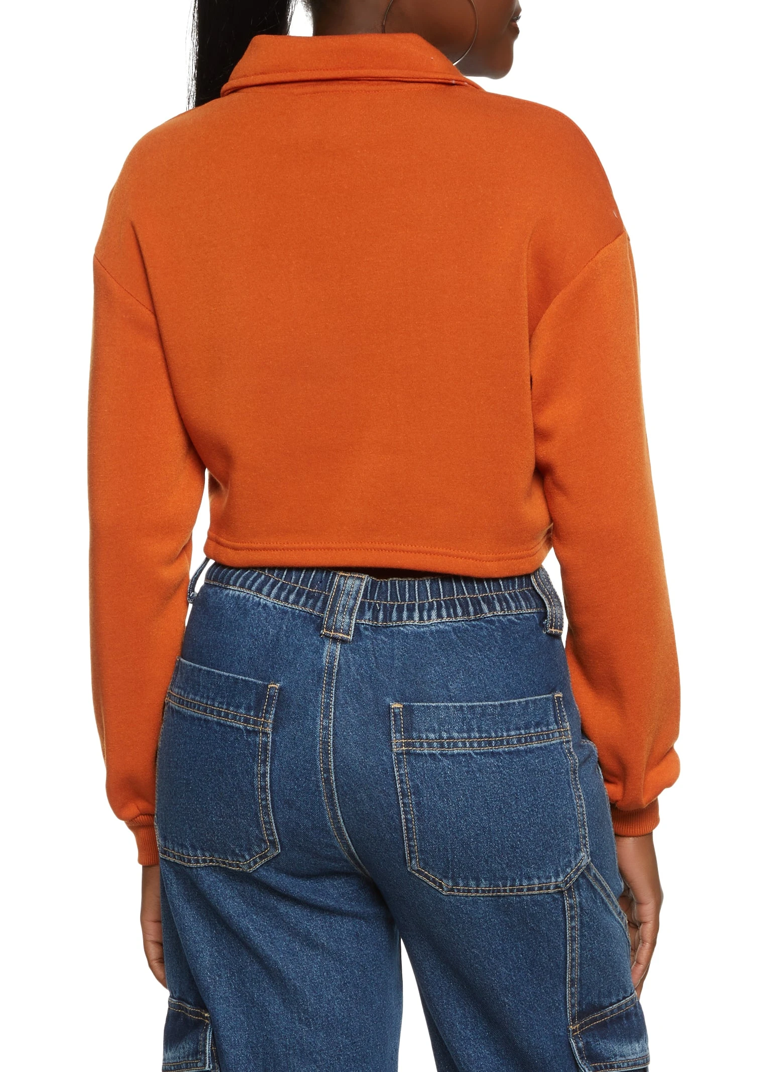 Out of Your League Embroidered Half Zip Cropped Sweatshirt – RUST