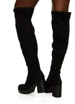 Over the Knee Platform Block Heel Boots – BLACK SUEDE
