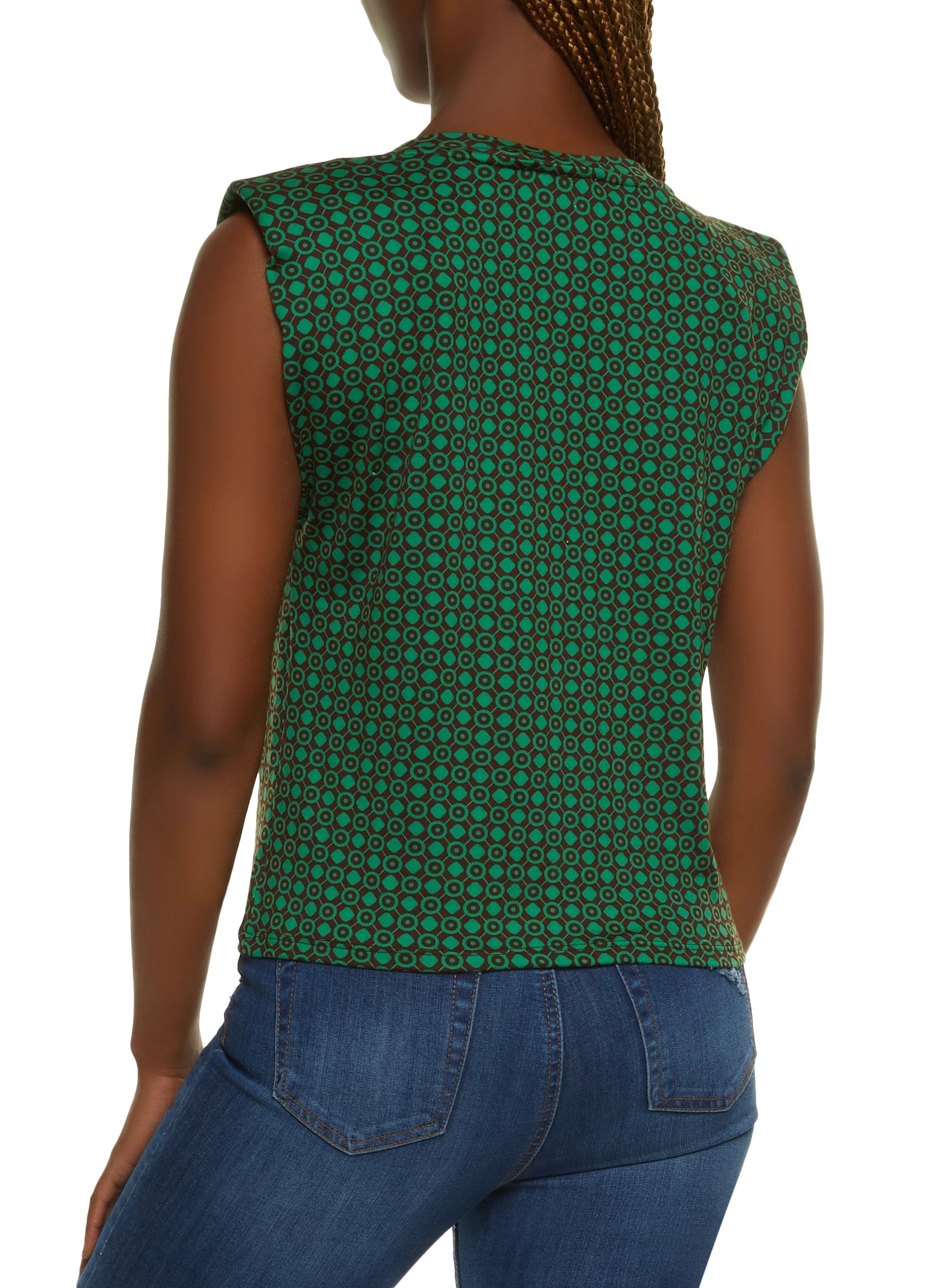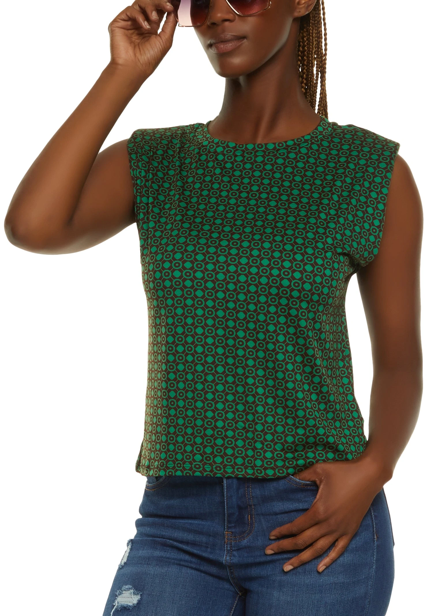 Patterned Padded Shoulder Sleeveless Top – BROWN