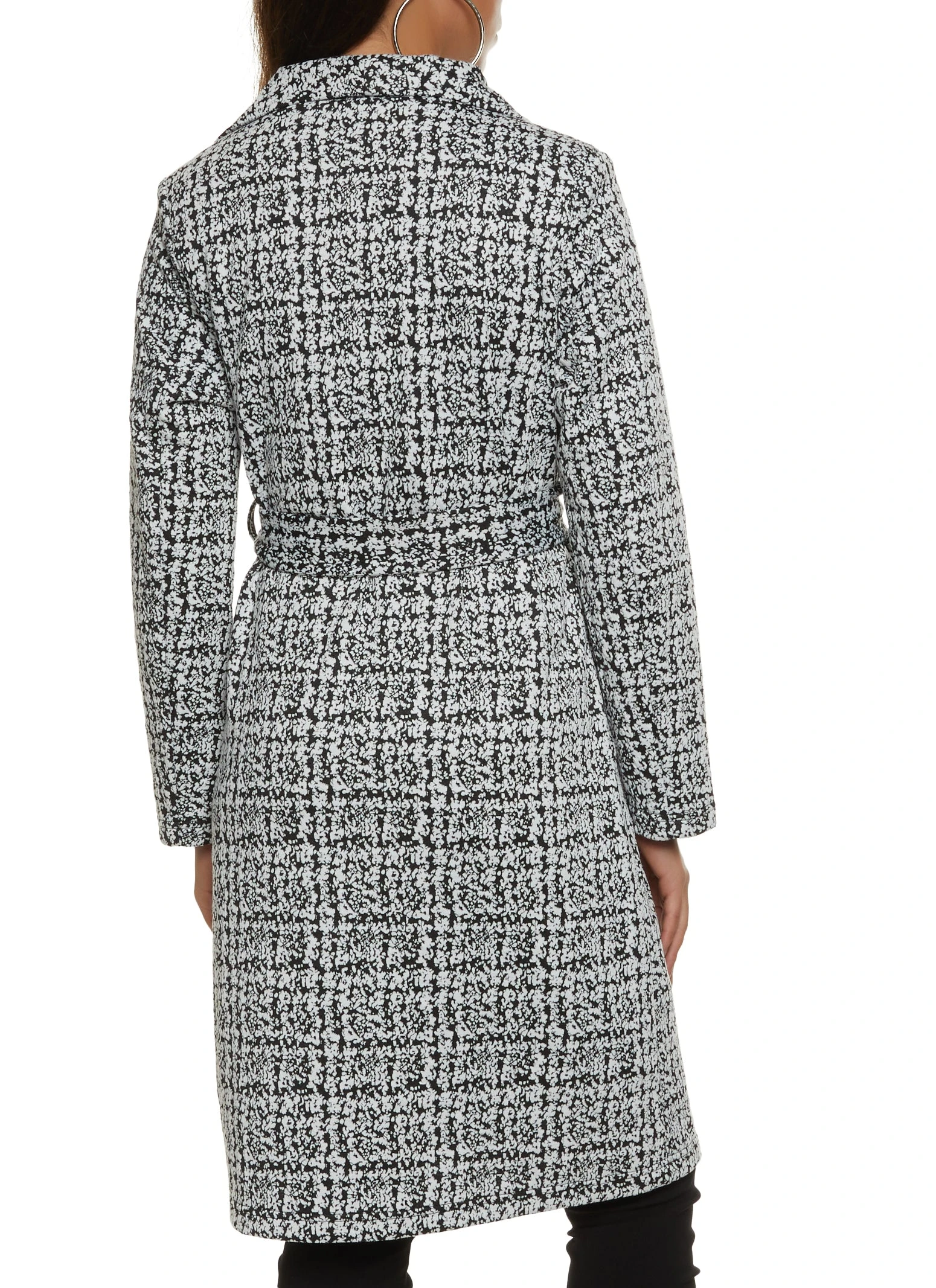 Patterned Shawl Collar Wrap Coat – BLACK/WHITE