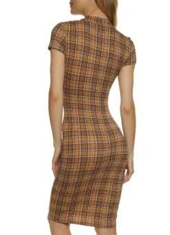 Plaid Mock Neck Bodycon Dress – BROWN
