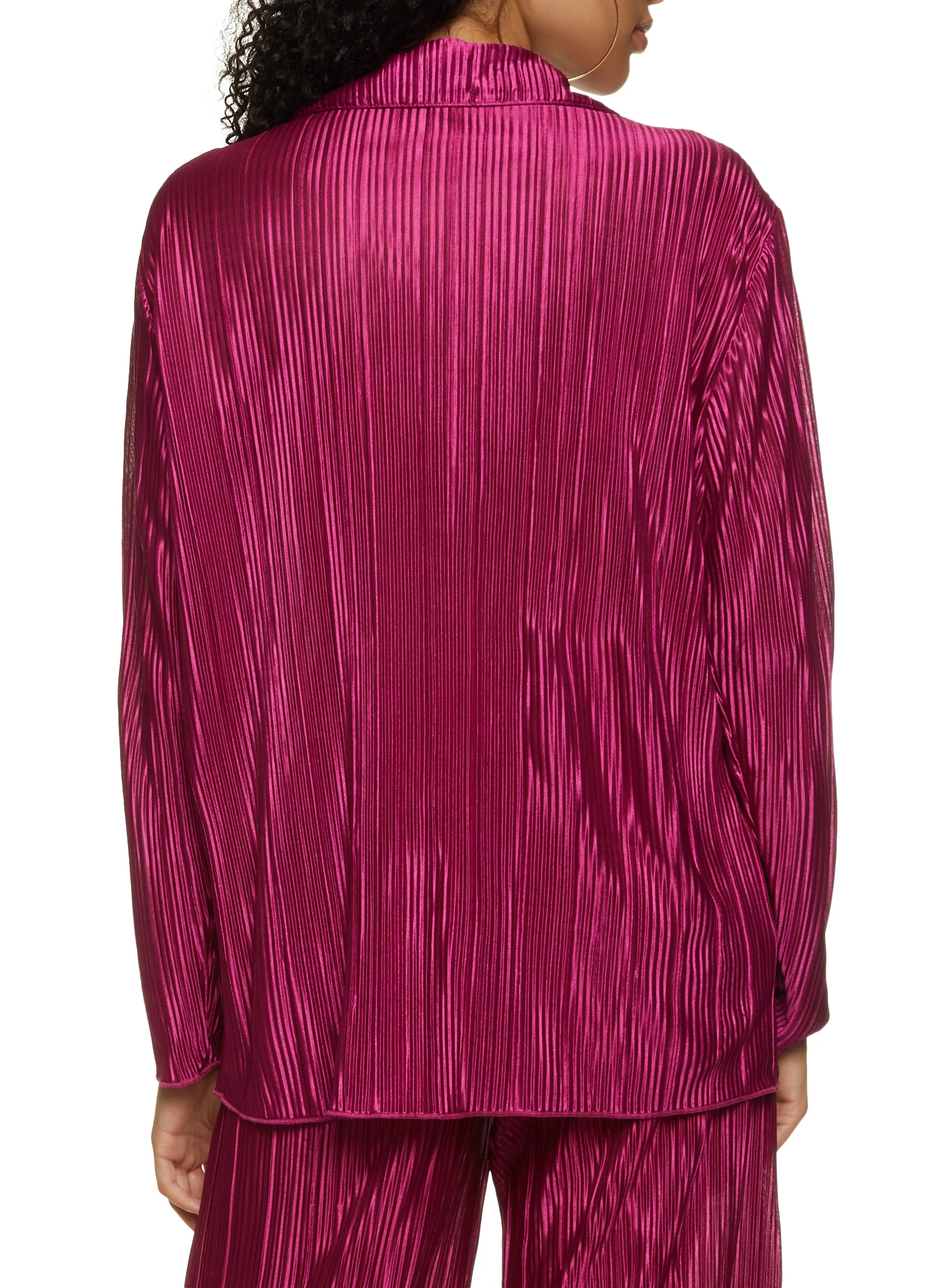 Plisse V Neck Button Front Shirt – FUCHSIA