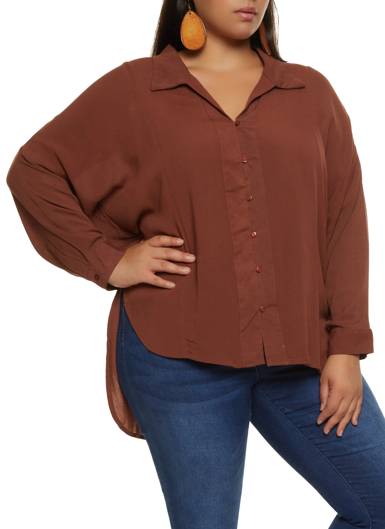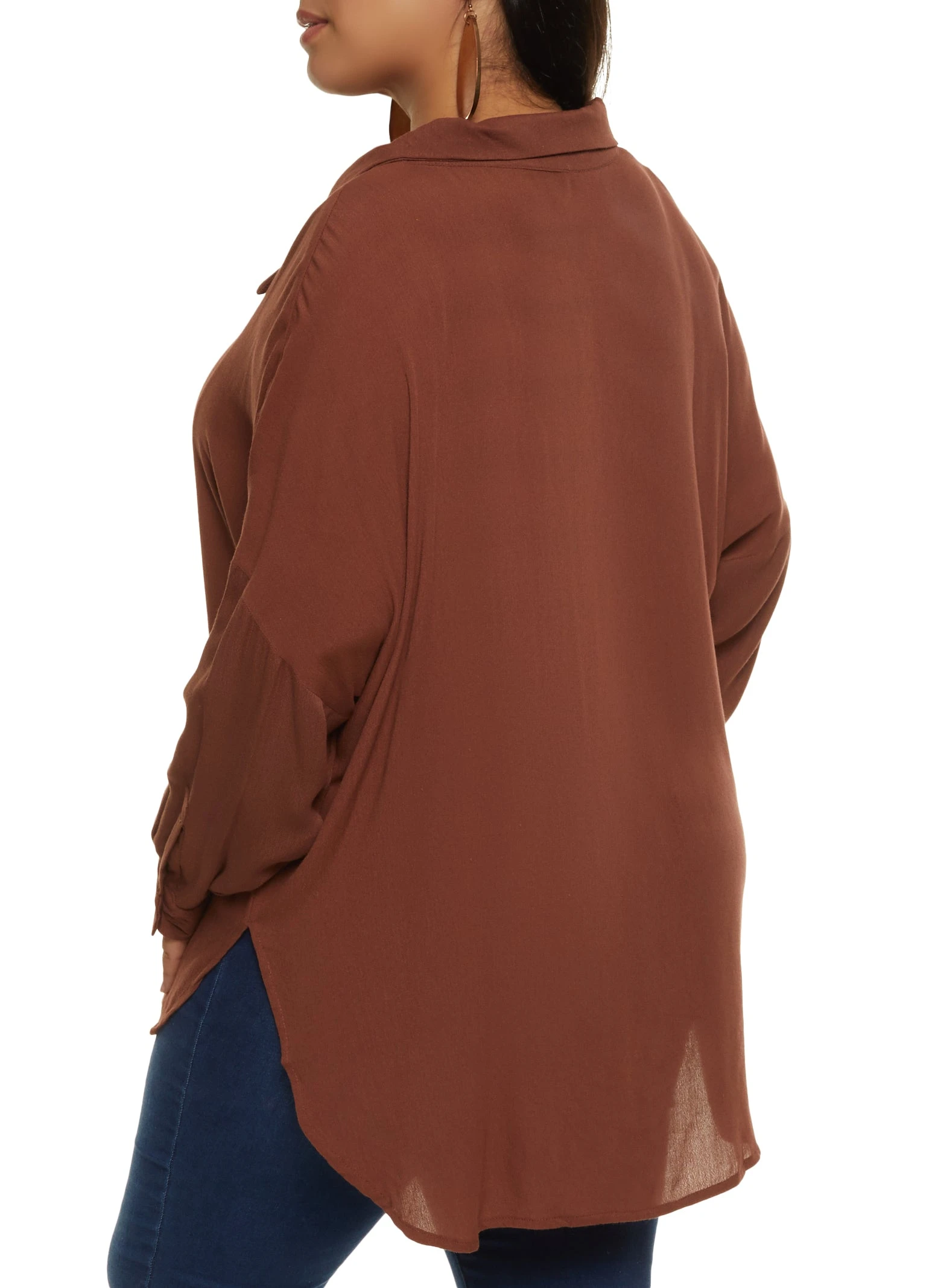 Plus Size Airy Button Front Shirt – BROWN