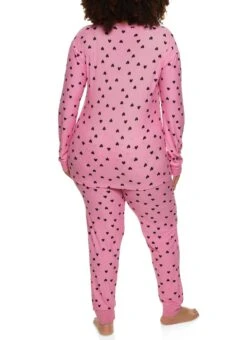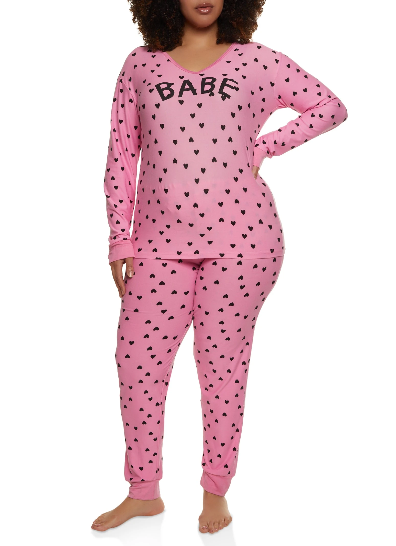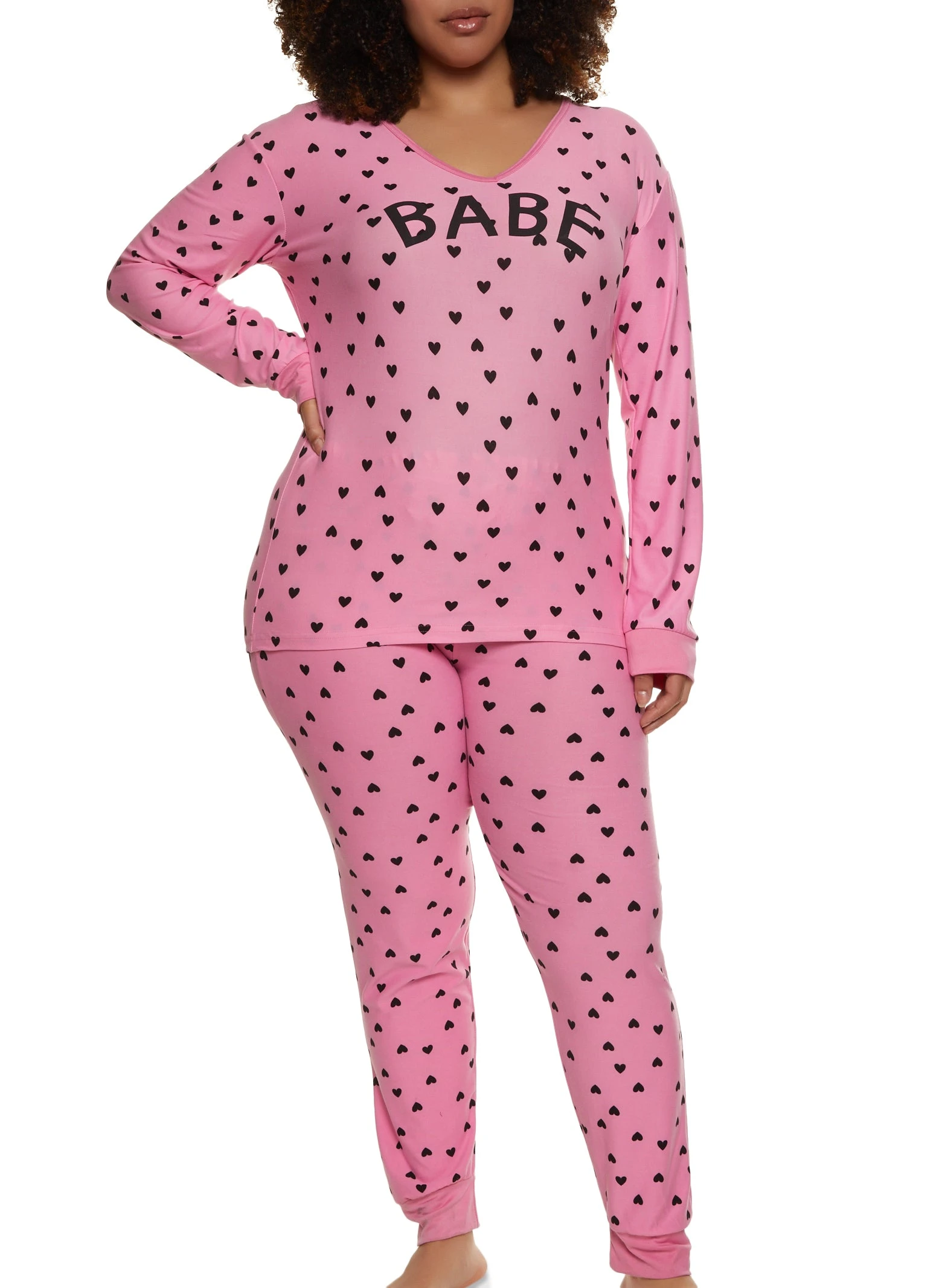 Plus Size Babe Heart Printed Pajama Top and Pants – PINK