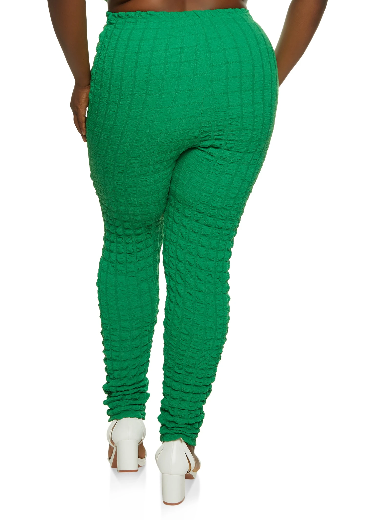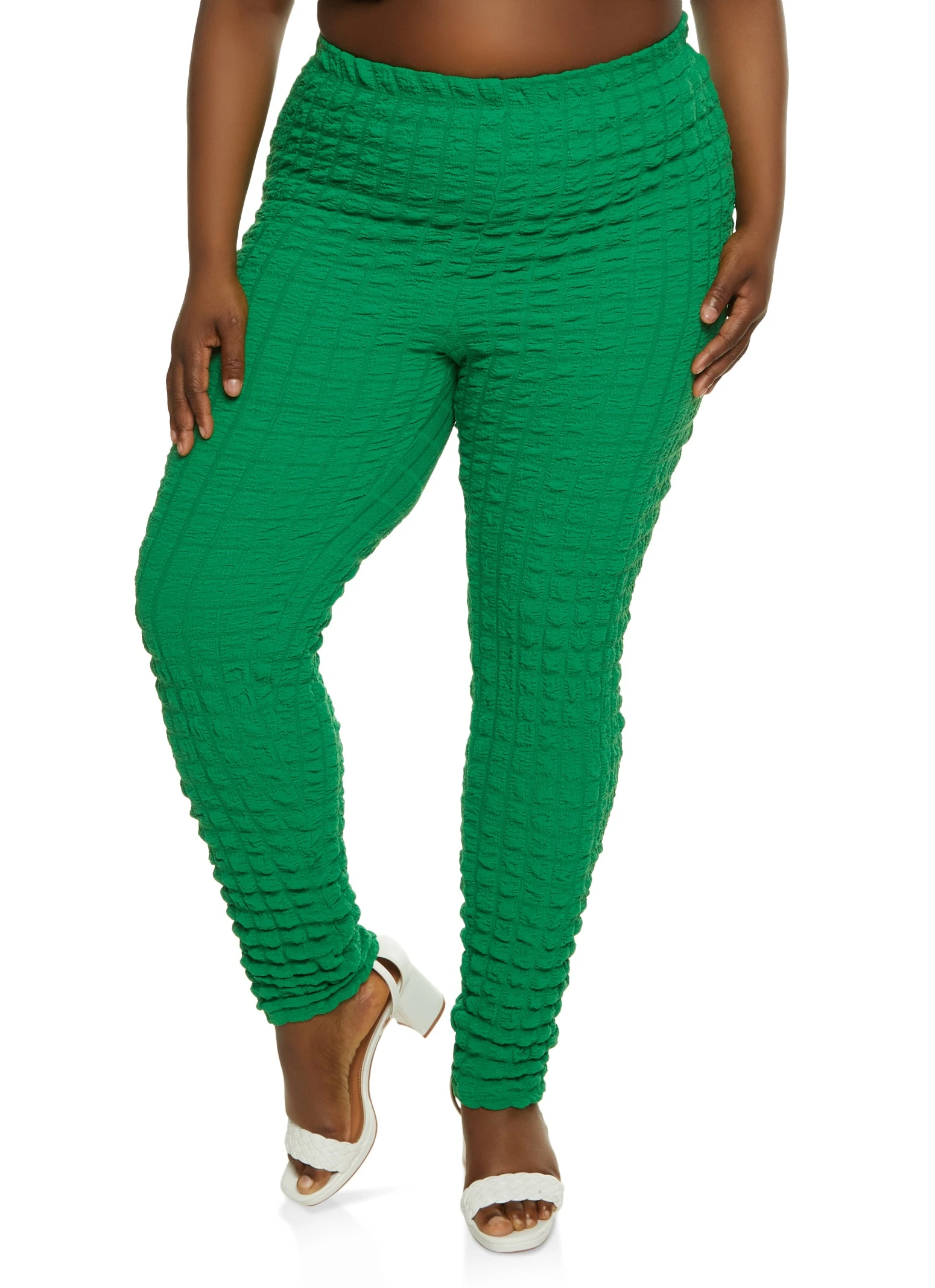 Plus Size Bubble Knit High Waisted Pants – GREEN