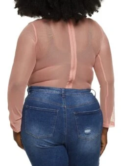 Plus Size Butterfly Sequin Mesh Long Sleeve Bodysuit – MAUVE