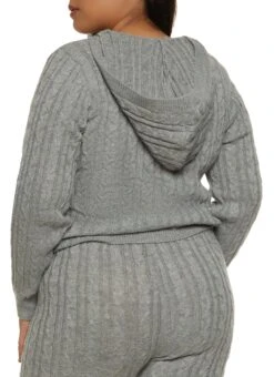 Plus Size Cable Knit Hooded Sweater – HEATHER