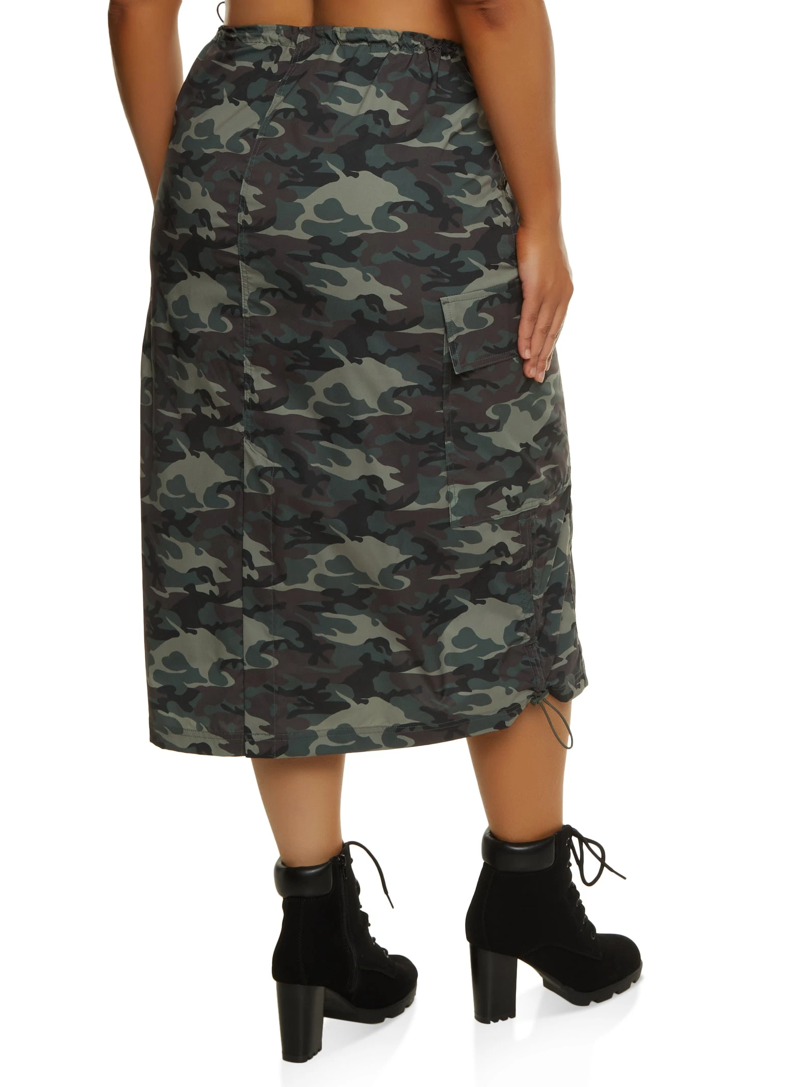 Plus Size Camo Cargo Pocket Midi Skirt – OLIVE