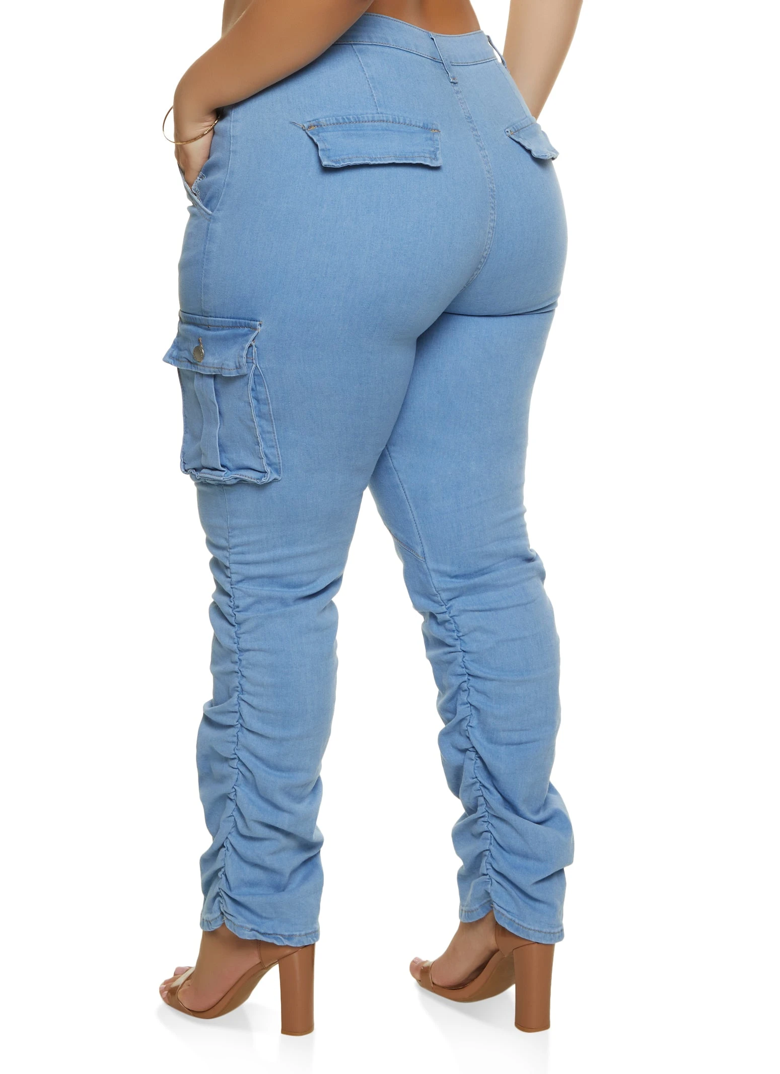 Plus Size Cargo Pocket Stacked Skinny Jeans – LIGHT WASH