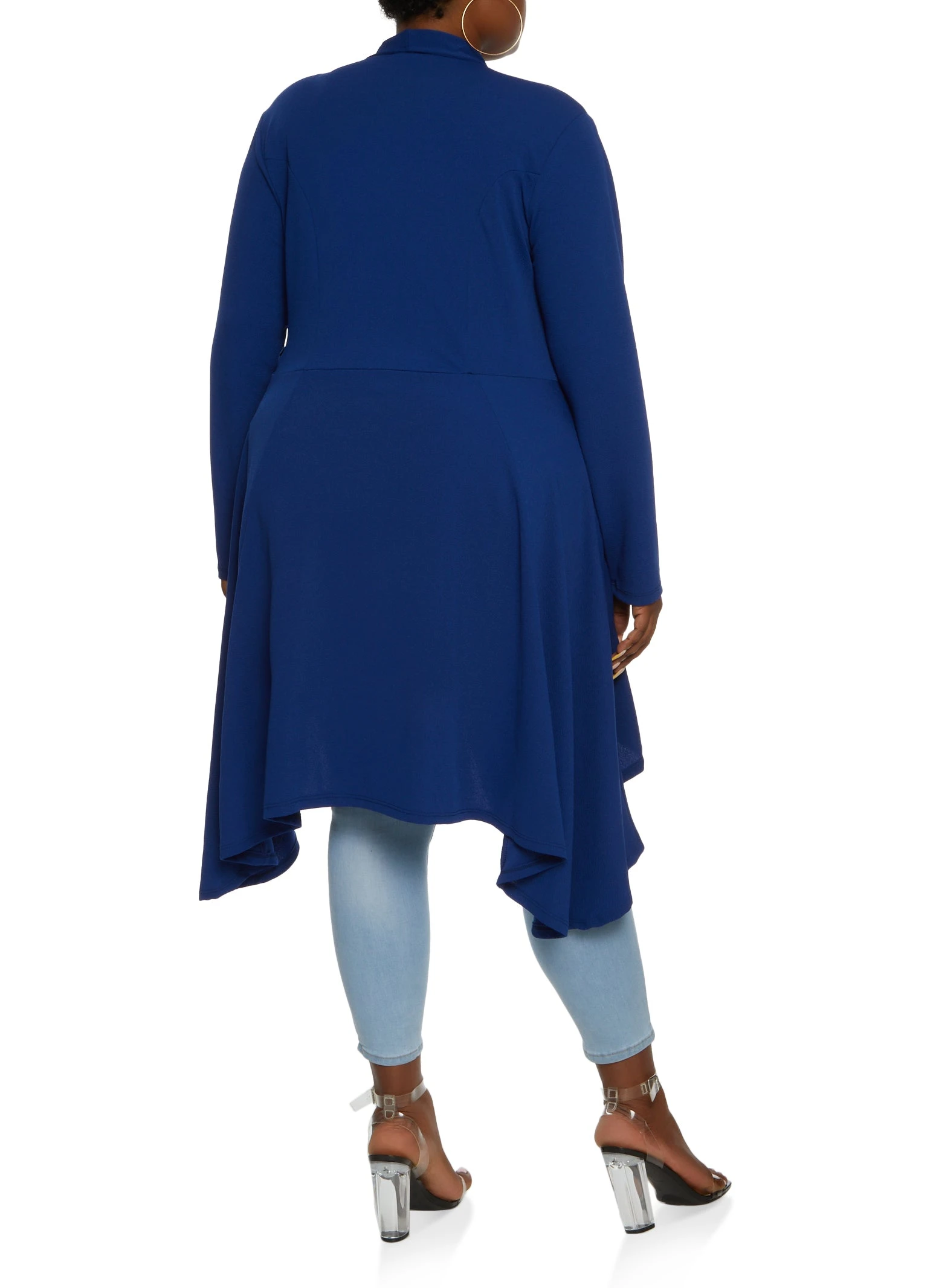 Plus Size Chain Button High Low Blazer – ROYAL BLUE