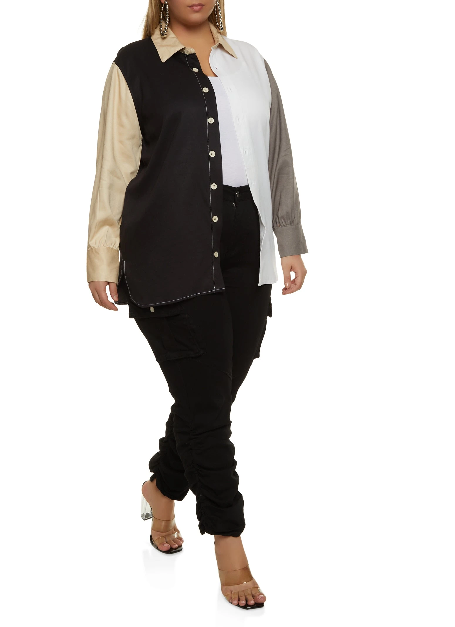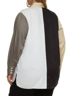Plus Size Color Blocked Button Down Shirt – BLACK/WHITE