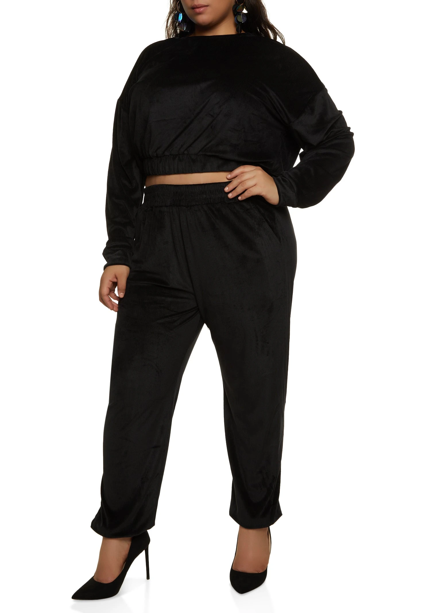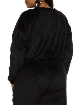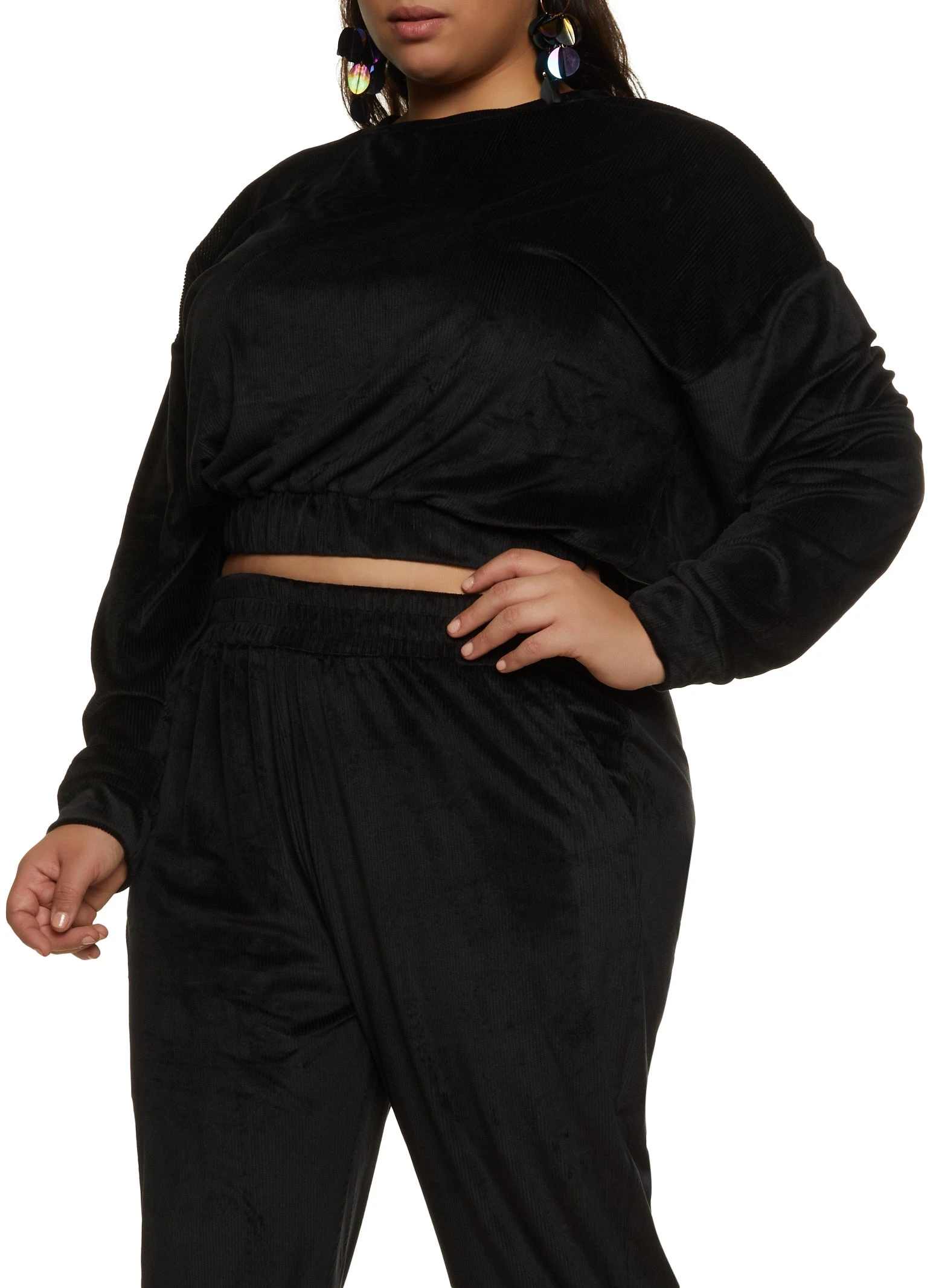 Plus Size Corduroy Velour Cropped Sweatshirt – BLACK