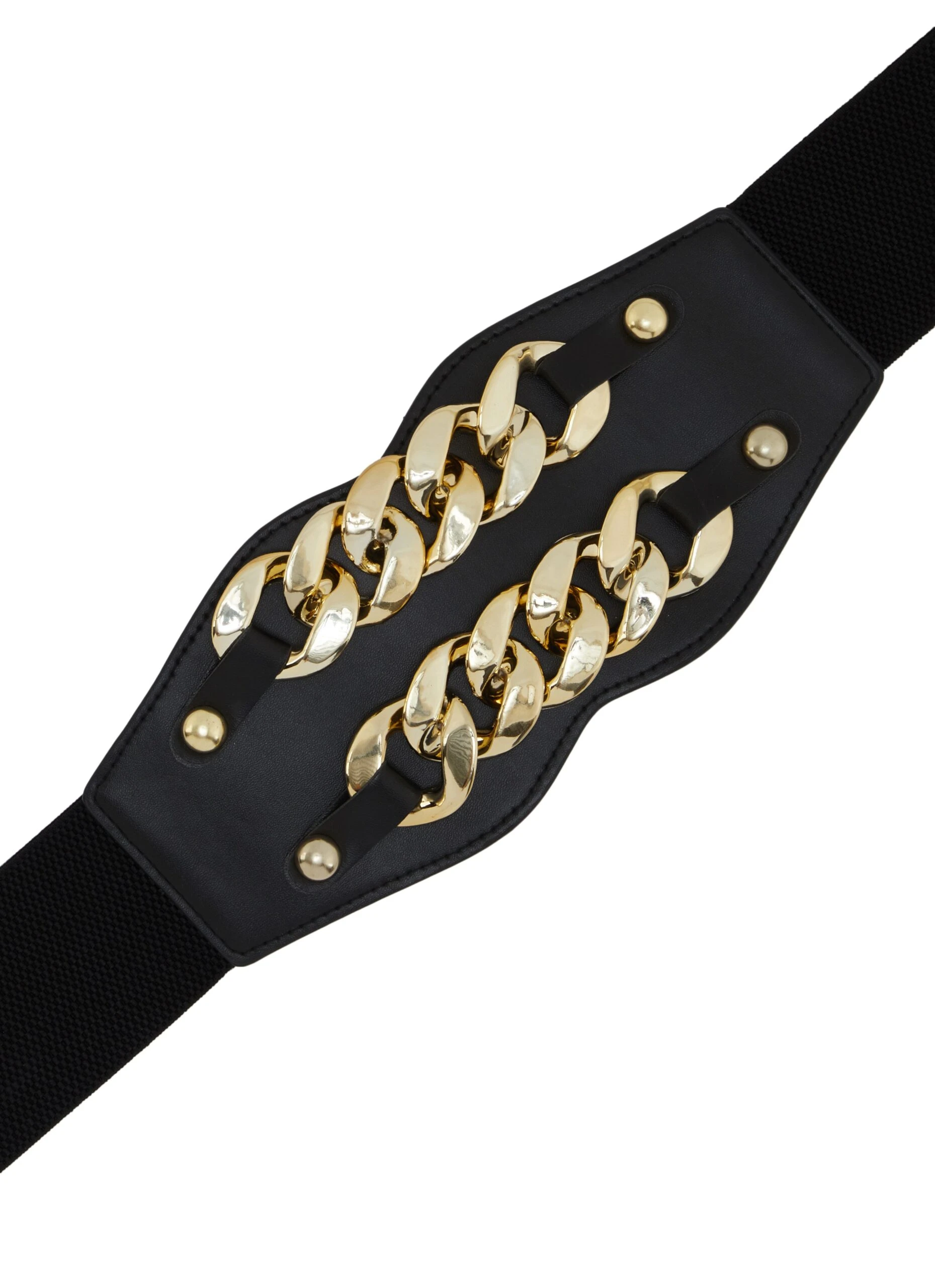 Plus Size Double Chain Link Stretch Belt – BLACK