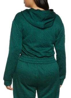 Plus Size Embossed Zip Up Cropped Hoodie – HUNTER
