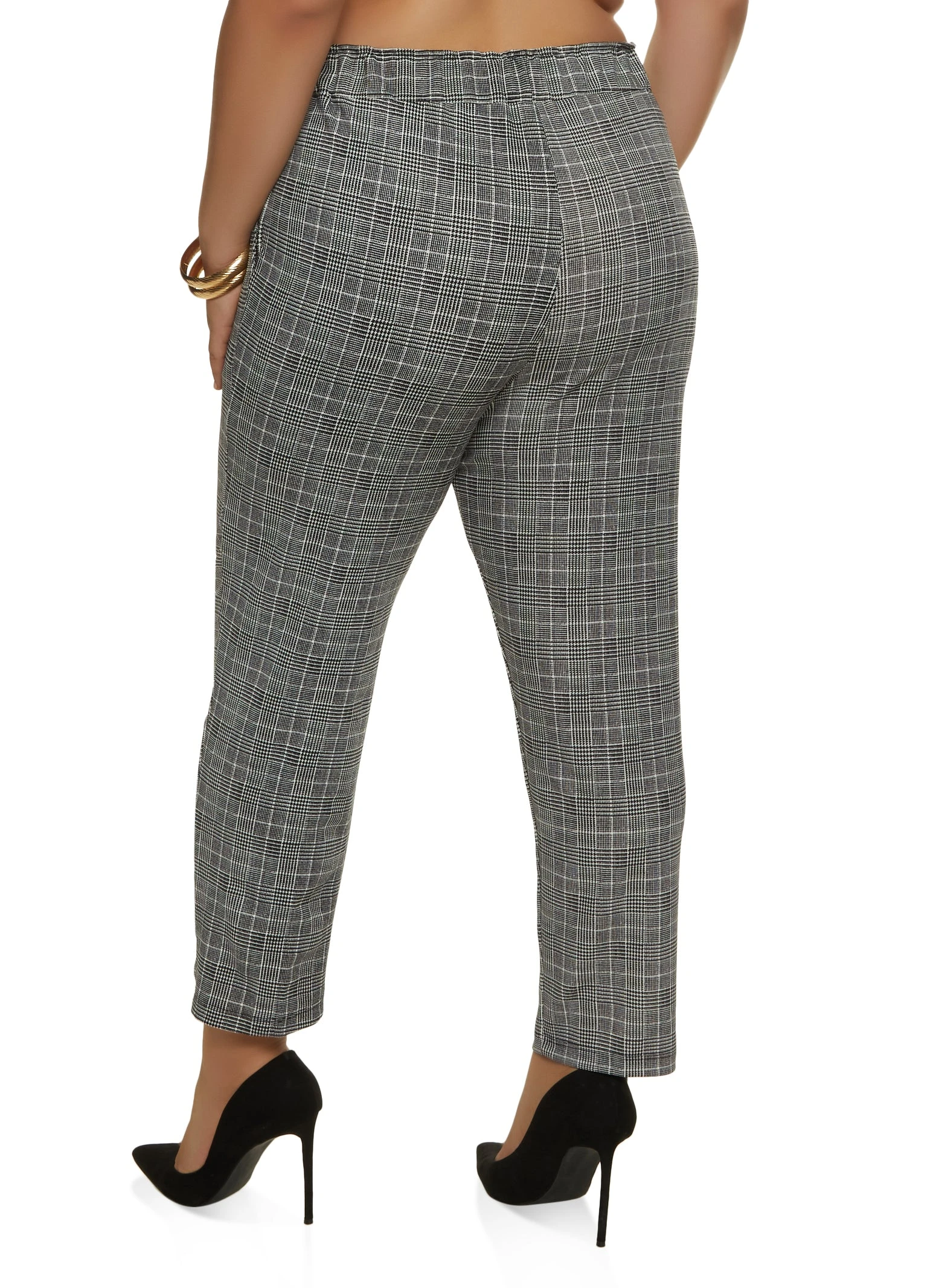 Plus Size Faux Button Plaid Dress Pants – BLACK