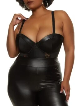Plus Size Faux Leather Lace Bustier Bodysuit – BLACK