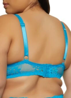 Plus Size Floral Lace Push Up Plunge Bra – BLUE