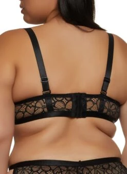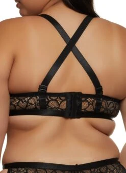 Plus Size Floral Print Scalloped Lace Balconette Bra | Converts to Strapless – BLACK