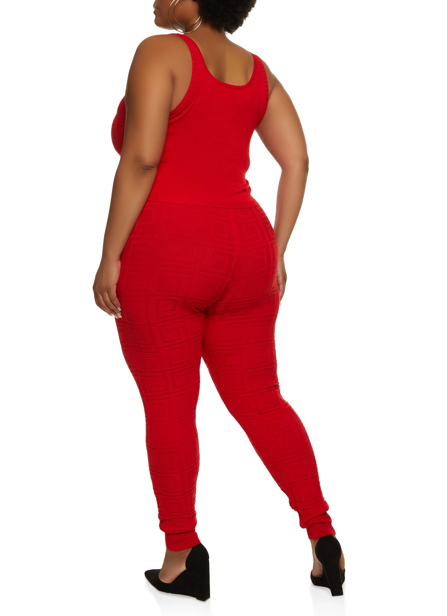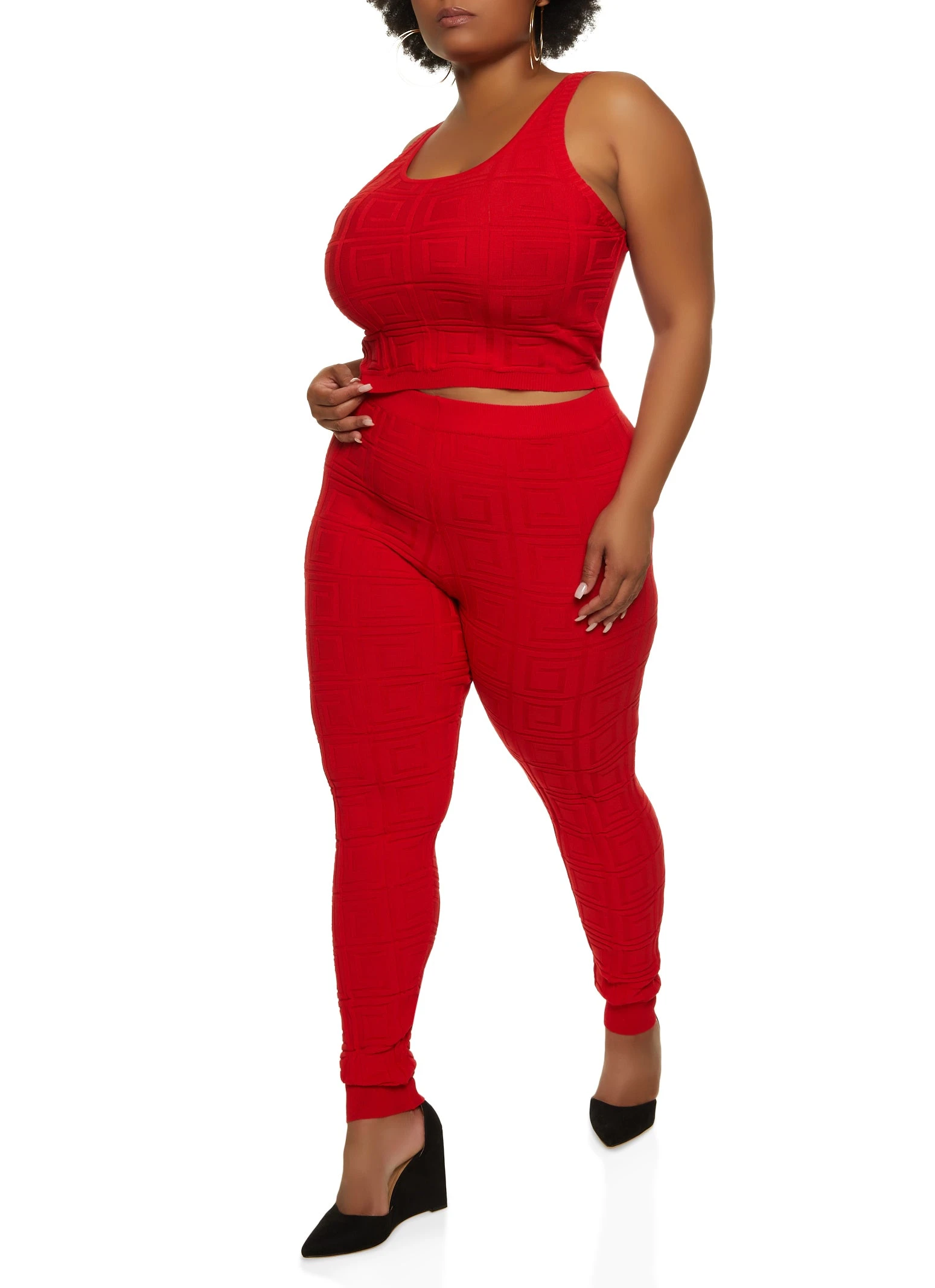 Plus Size Geo Knit Tank Top and Leggings Set – RED