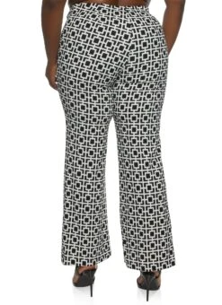 Plus Size Geometric Print Flared Dress Pants – BLACK/WHITE