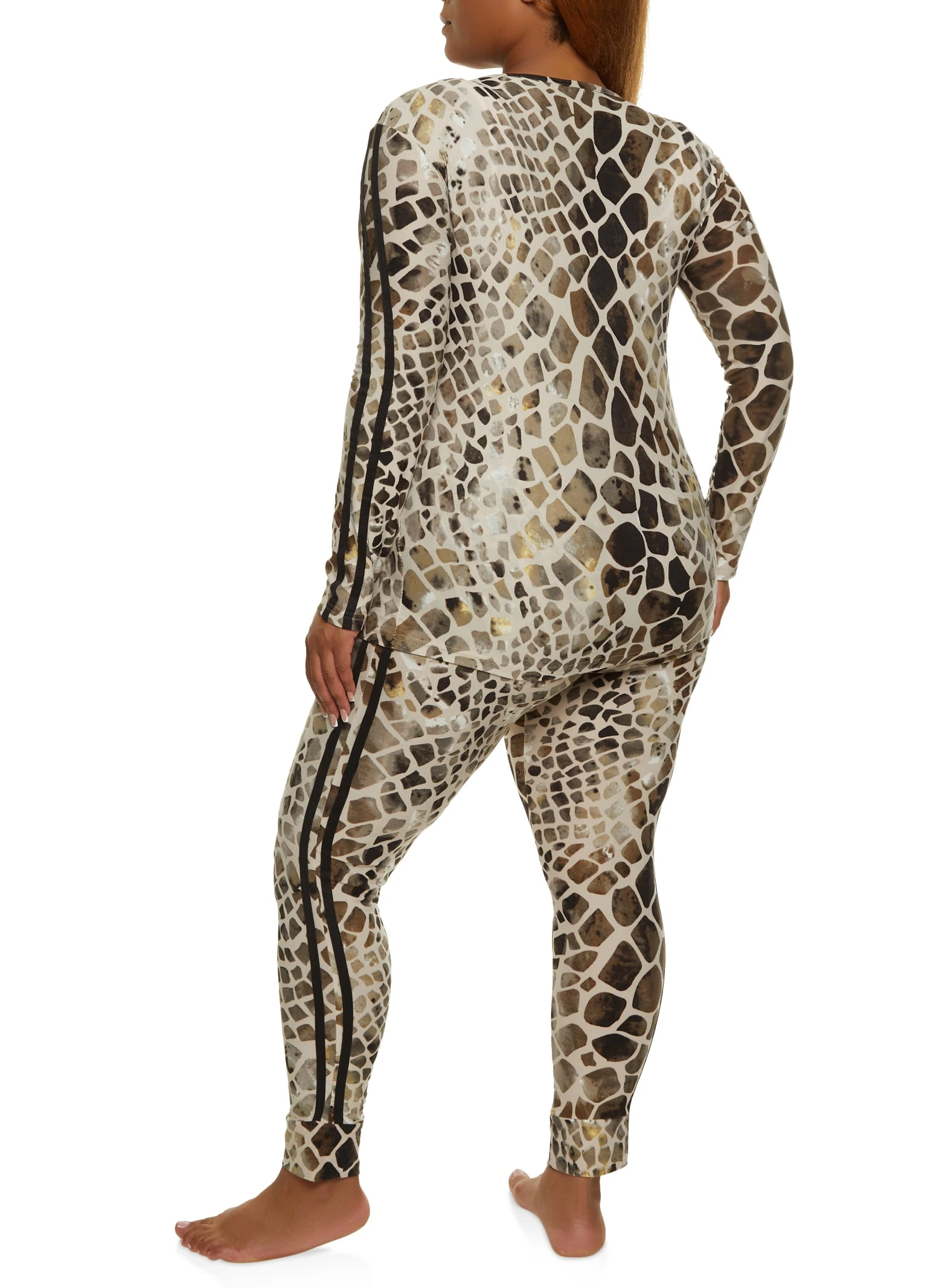Plus Size Giraffe Print Pajama Top and Pants Set – MULTI COLOR