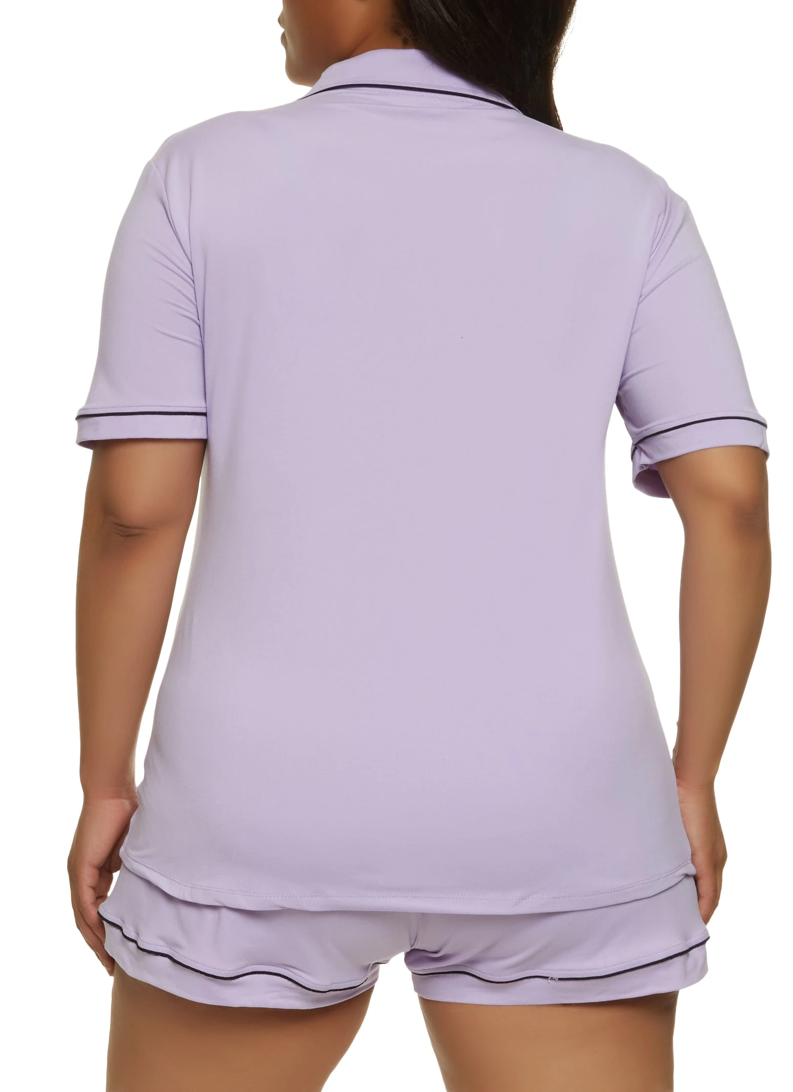 Plus Size Good Morning Notch Collar Pajama Shirt and Shorts – PURPLE