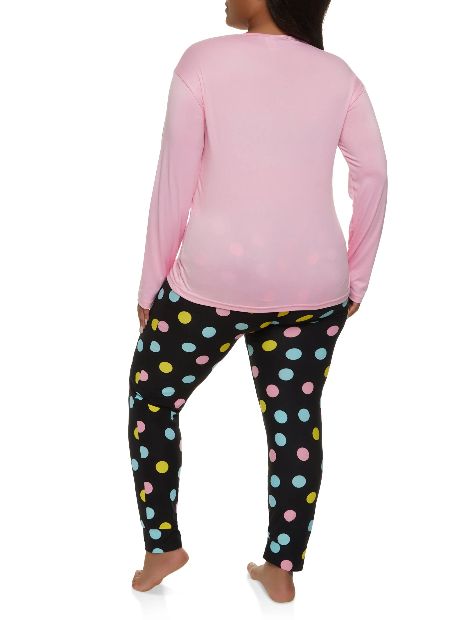 Plus Size Happy Long Sleeve Pajama Top and Pants – PINK