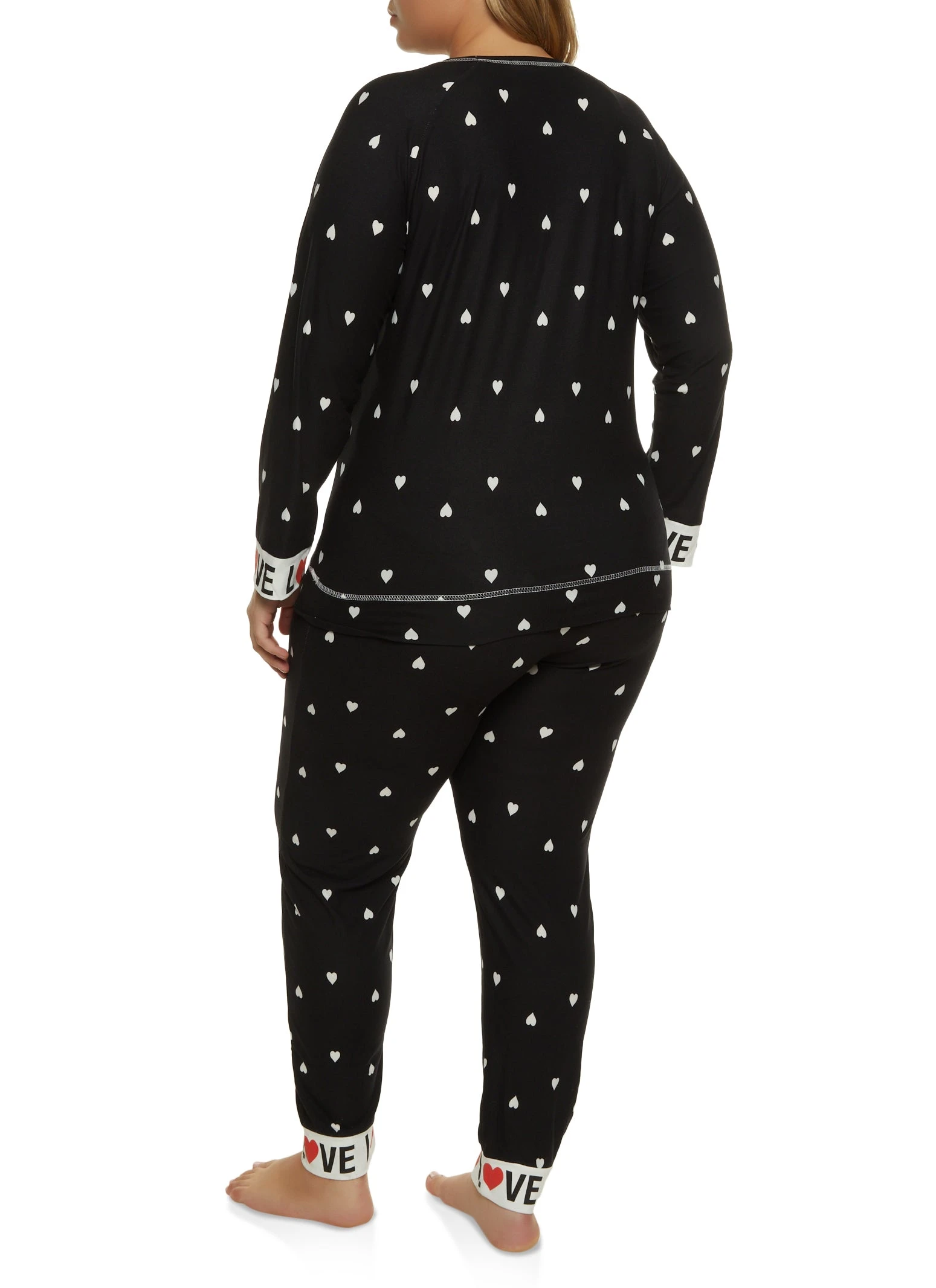 Plus Size Heart Print Graphic Cuff Pajama Top and Pants – BLACK/WHITE