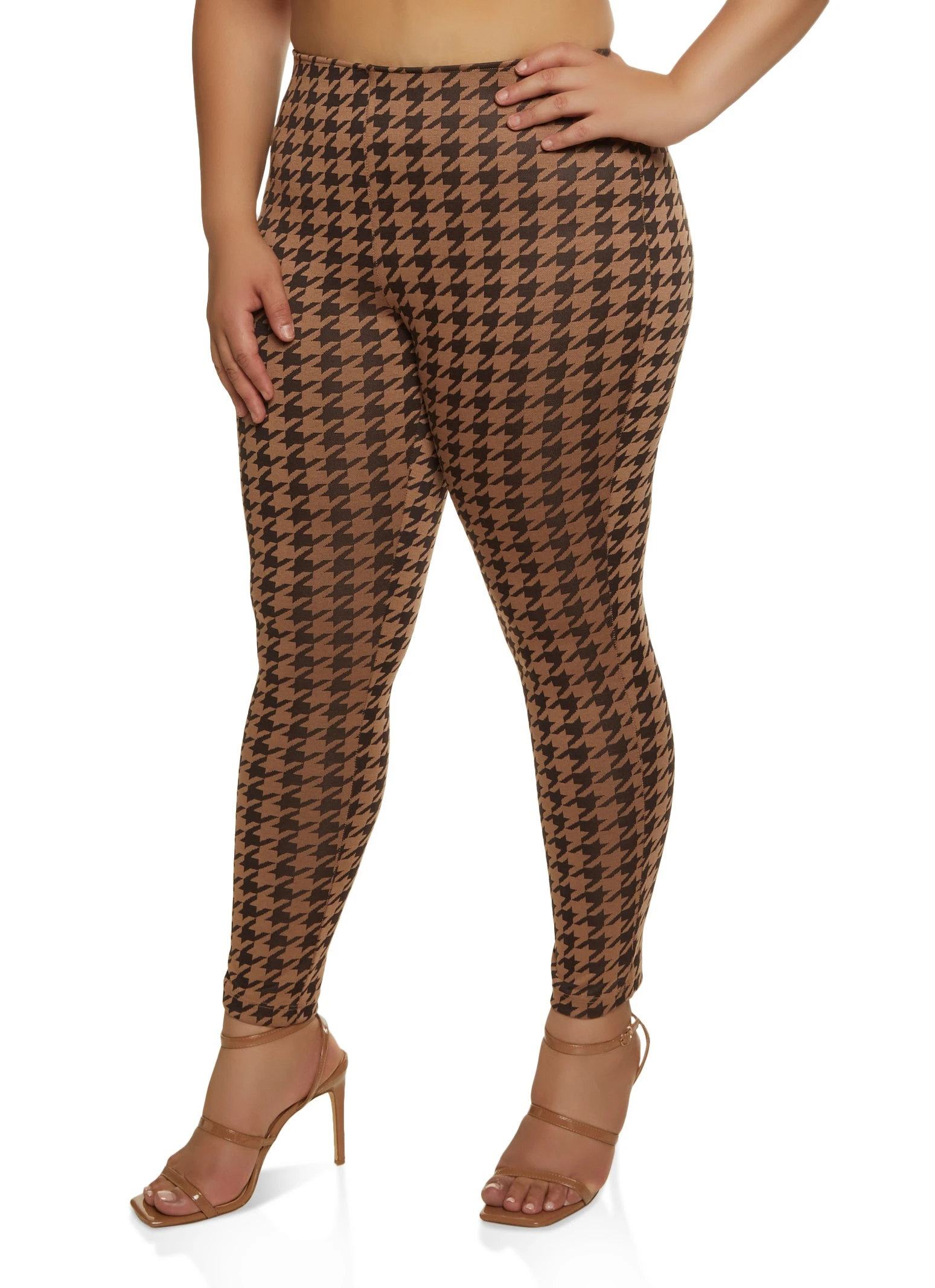 Plus Size Houndstooth Print Pull On Pants – TAUPE
