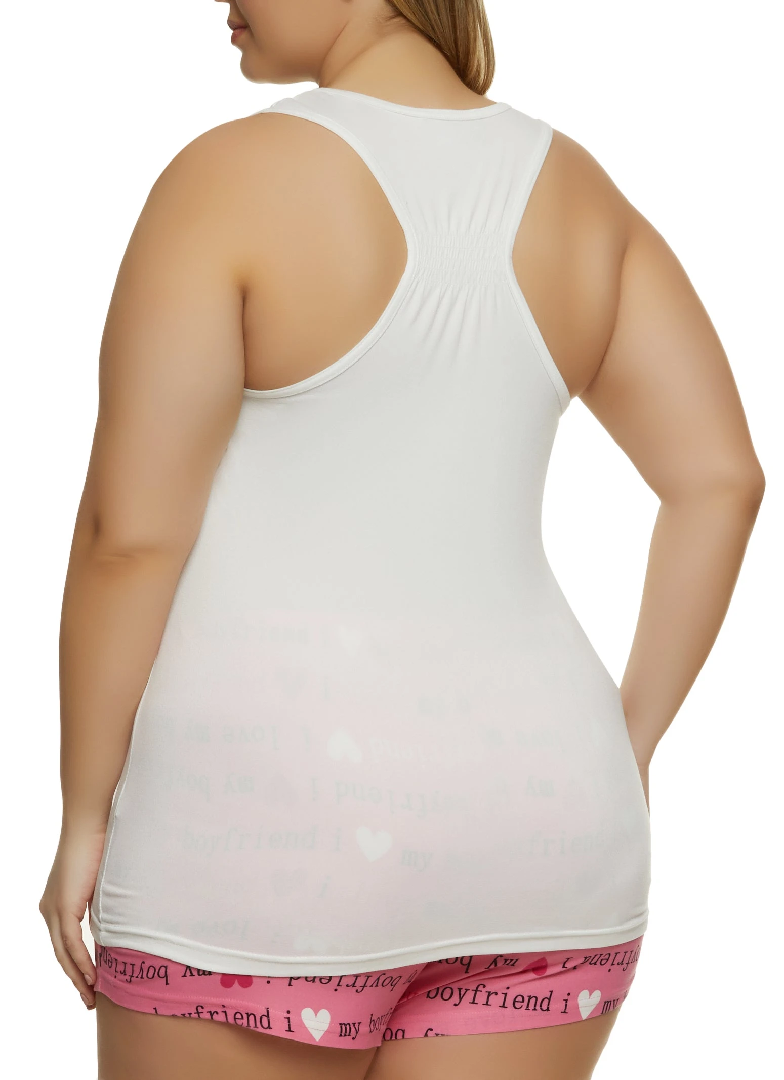 Plus Size I Love My Boyfriend Pajama Tank Top and Shorts – WHITE