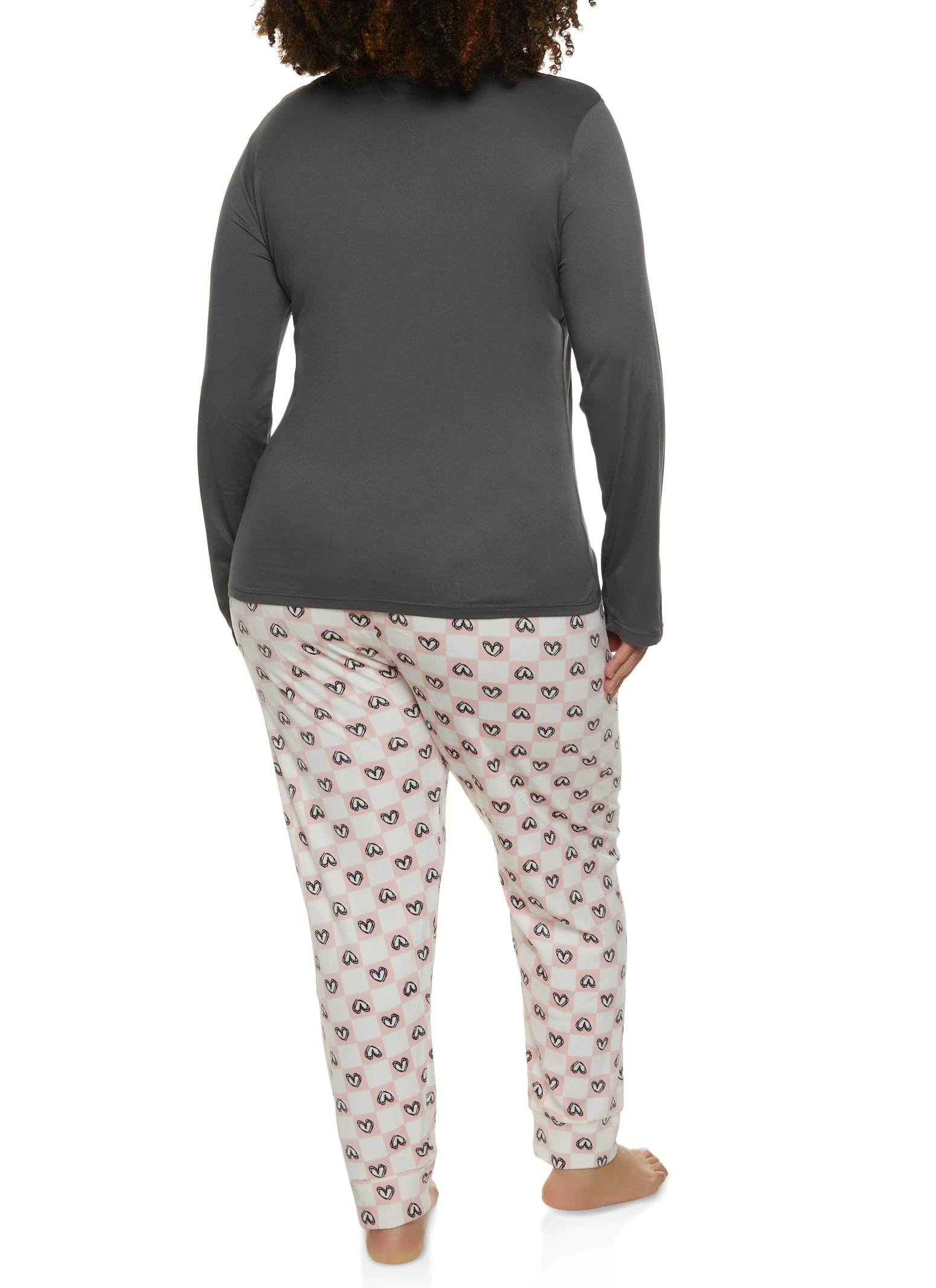 Plus Size I Love Sleeping All Day Pajama Top and Pants – GRAY