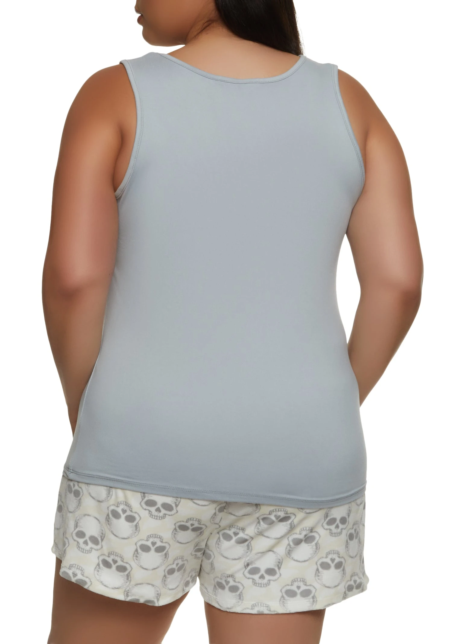 Plus Size Im Not A Morning Person Pajama Tank Top and Shorts – GRAY