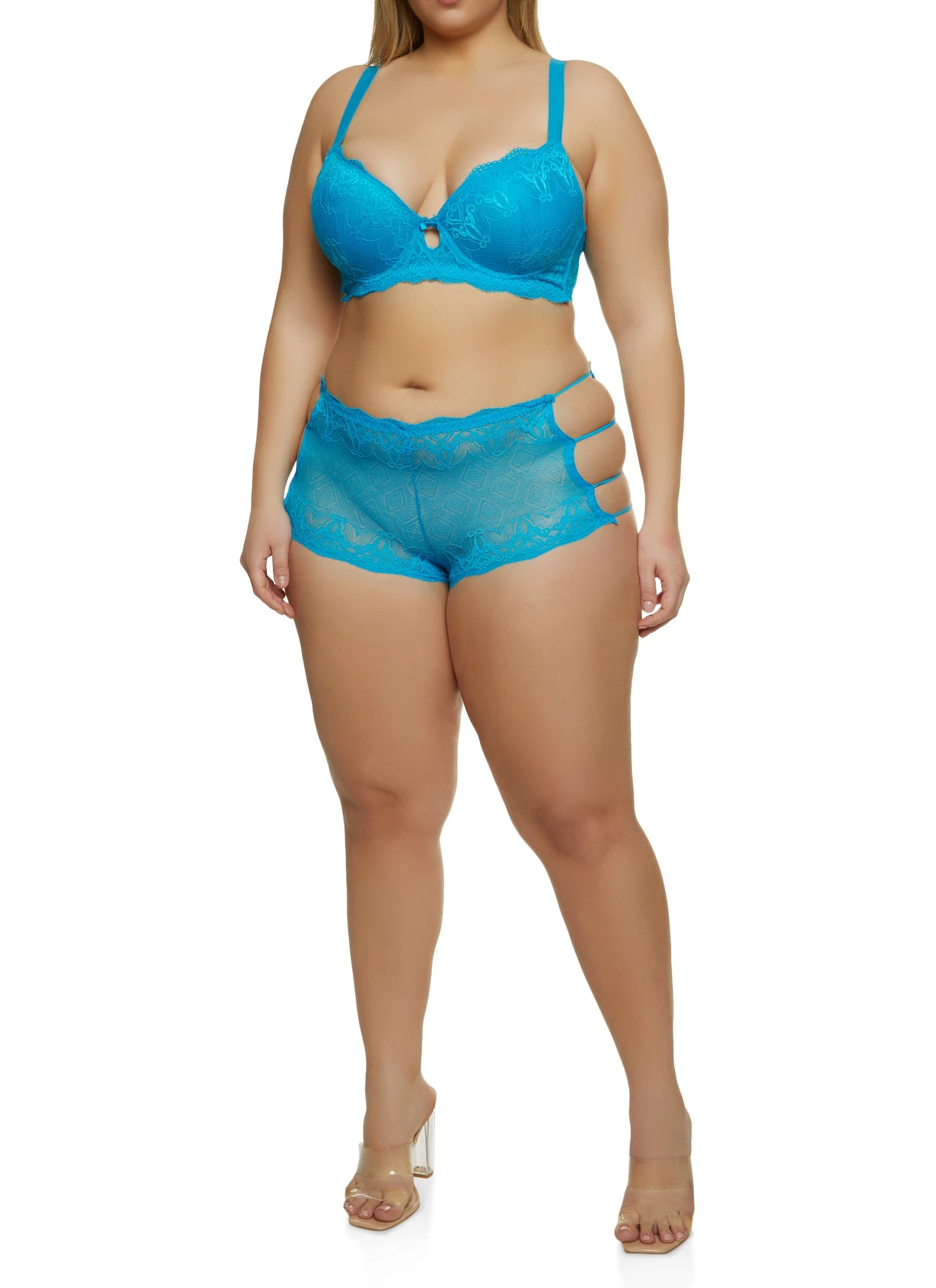 Plus Size Keyhole Scalloped Lace Plunge Bra – BLUE